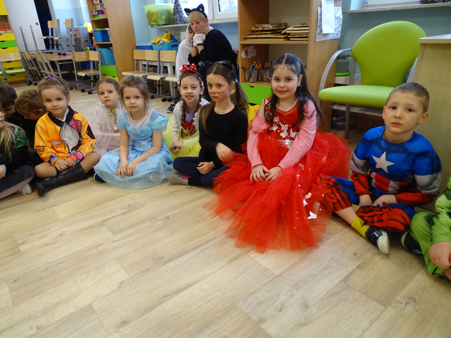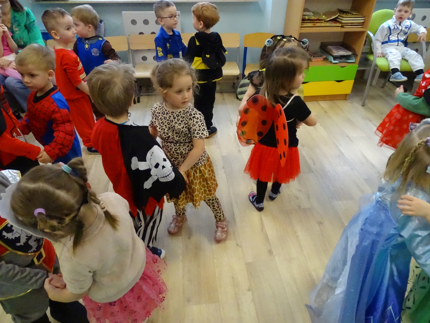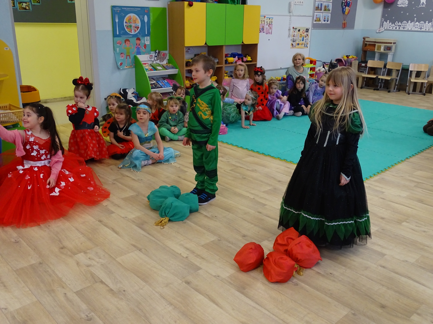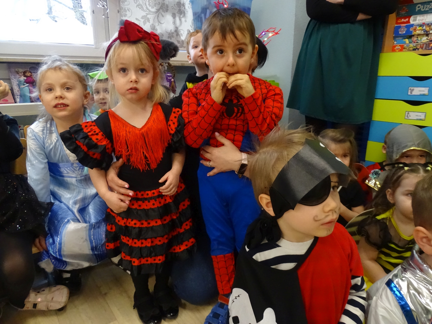 Bal karnawałowy w przedszkolu był dniem pełnym radości, kolorów i wspaniałej zabawy. Dzieci przyszły w pięknych, pomysłowych strojach – można było spotkać księżniczki, superbohaterów, zwierzątka oraz bajkowe postacie. Podczas balu nie zabrakło tańców przy ulubionej muzyce, wspólnych zabaw i konkursów. Sala udekorowana balonami i serpentynami stworzyła wyjątkową, karnawałową atmosferę. To był niezapomniany dzień pełen uśmiechów i dziecięcej radości.