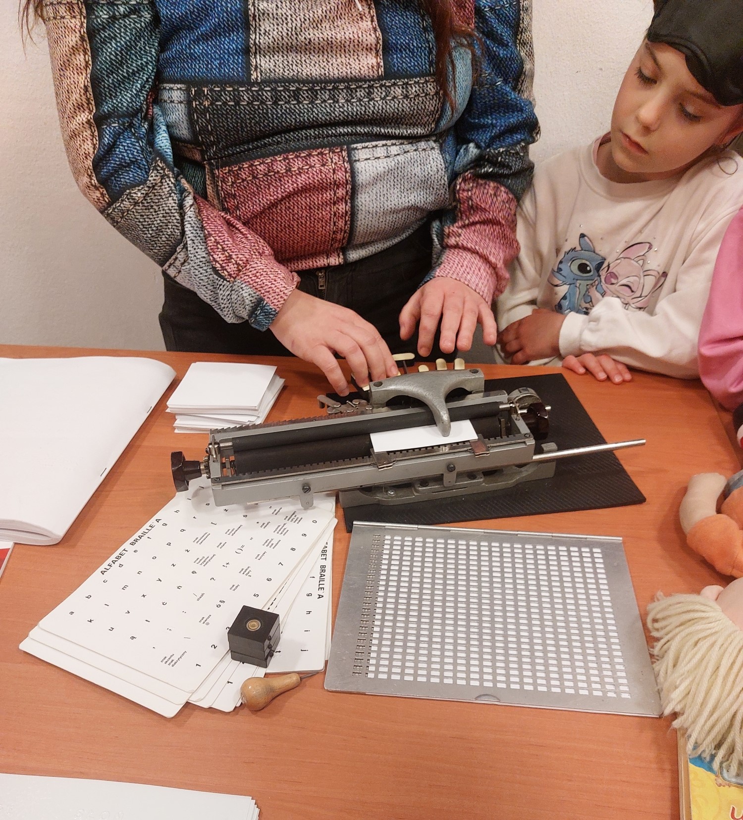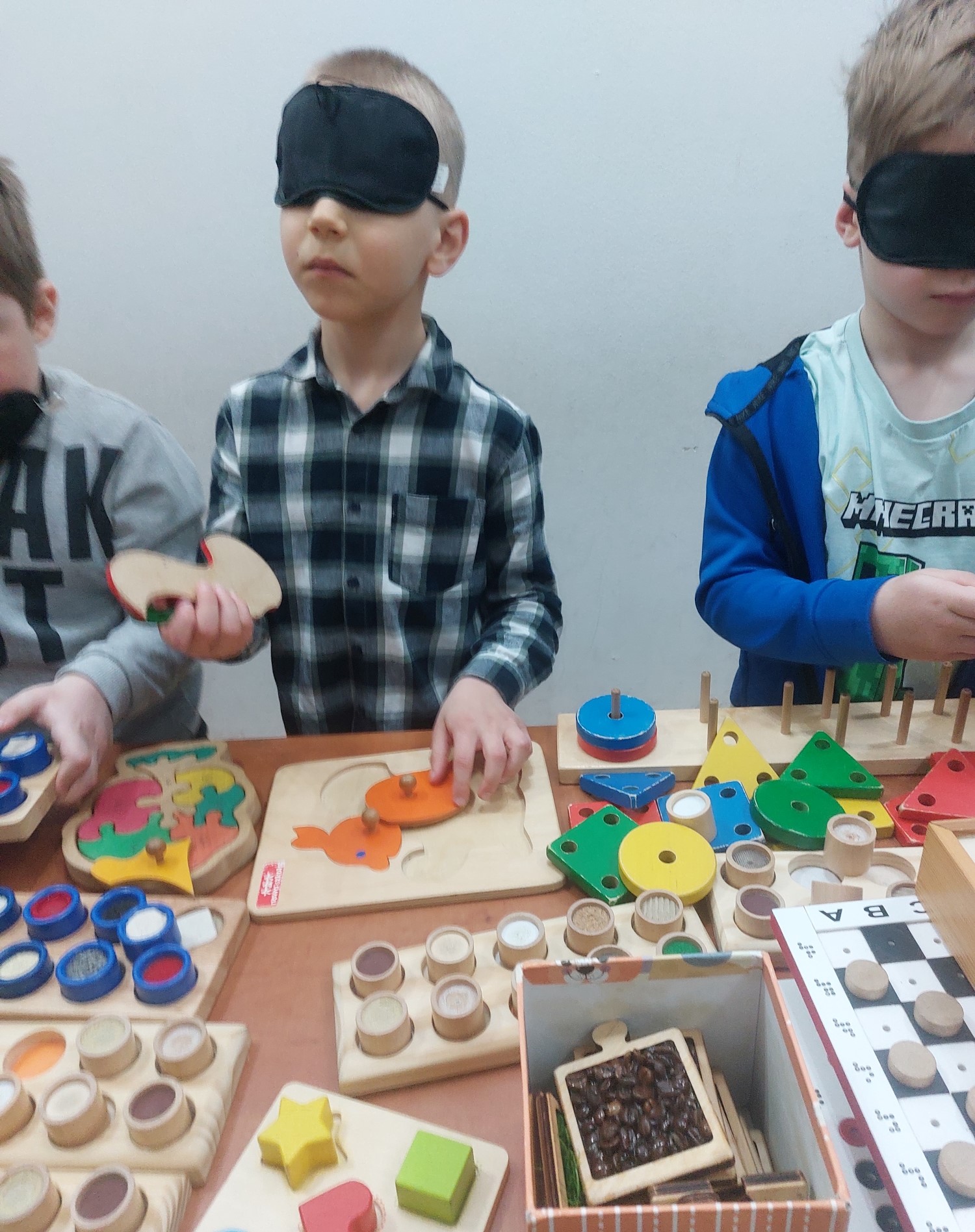 W kwietniu dzieci z grupy Słoneczniki były na wycieczce w Polskim Związku Niewidomych i uczestniczyły w warsztatach „Laboratorium ciemności”. Dzieci i opiekunowie mieli możliwość sprawdzenia jak widzą osoby słabowidzące. Wszyscy brali udział w ćwiczenia z symulatorami różnych schorzeń wzroku. Przedszkolaki dowiedziały się jak pomóc osobie niewidomej przypadkowo spotkanej na ulicy. Doświadczyły poruszania się z białą laską z zasłoniętymi oczami. Podczas ćwiczeń „Świat dźwięków, dotyku, zapachów – nie widzę, a rozpoznaję” poznały różne przedmioty potrzebne niewidomym w codziennym życiu. Sprawdziły, jak nalać wodę do szklanki, rozpoznać kolory, zmierzyć temperaturę. Dzieci dowiedziały się, jak czytają i piszą osoby niewidome? Odbyła się prezentacja pisma Braille’a i specjalnych technik komputerowych. Każdy z obecnych otrzymał swoje imię napisane alfabetem Braille’a. Podczas zajęć w ciemni dzieci próbowały rozpoznać za pomocą dotyku rysunki dla niewidomych, mapy, miniatury obiektów.