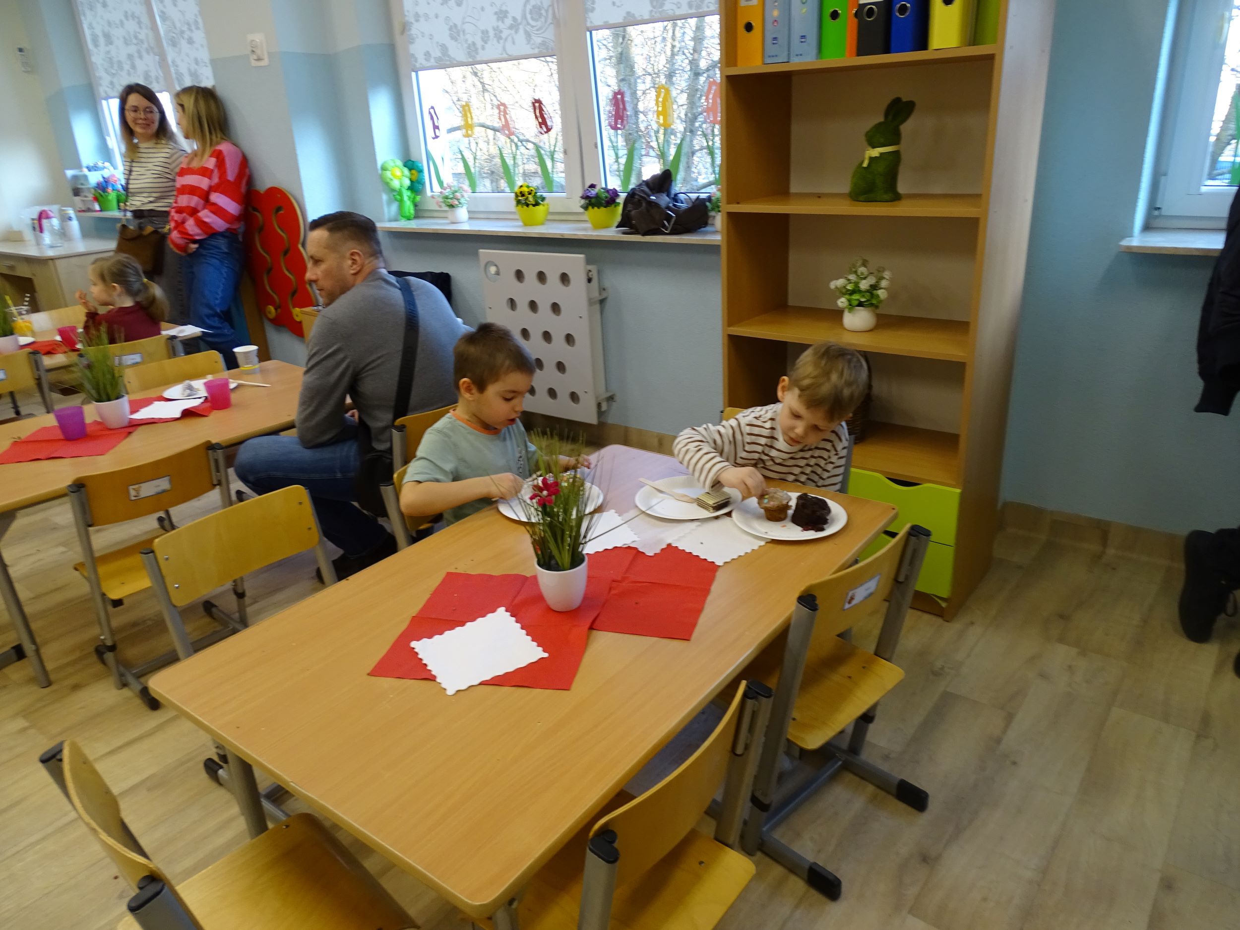 20 marca w naszym przedszkolu odbył się Kiermasz Wielkanocny. Było to wyjątkowe wydarzenie podczas, którego dzieci wraz z rodzicami mogły złożyć koszyczek z origami, zakupić przepiękne ozdoby oraz spróbować smakołyków w kawiarence. Dzięki zaangażowaniu rodziców udało się zorganizować akcję charytatywną, której celem było wsparcie pani Jadzi, która wykonała piękne, wielkanocne rękodzieło.
