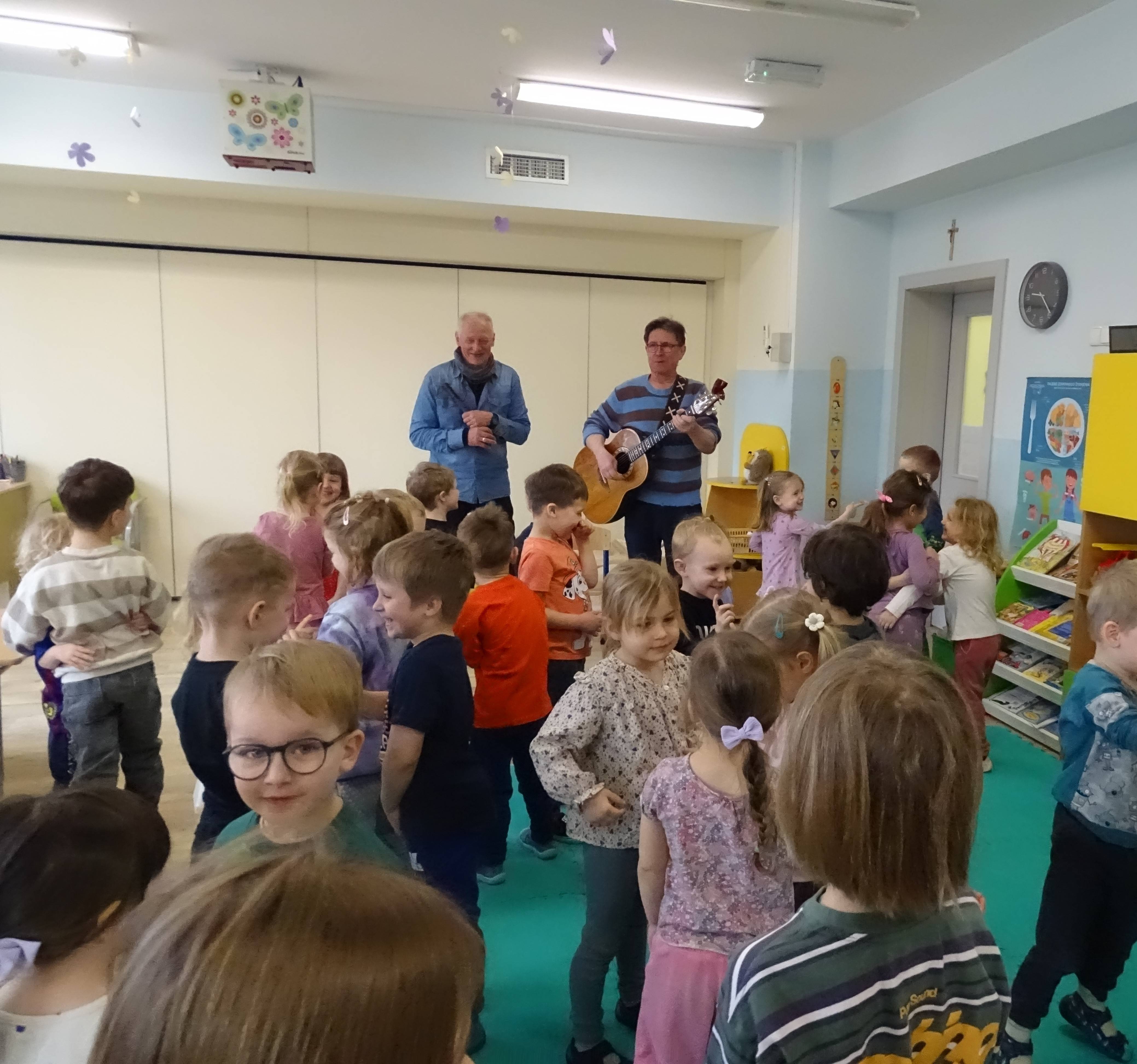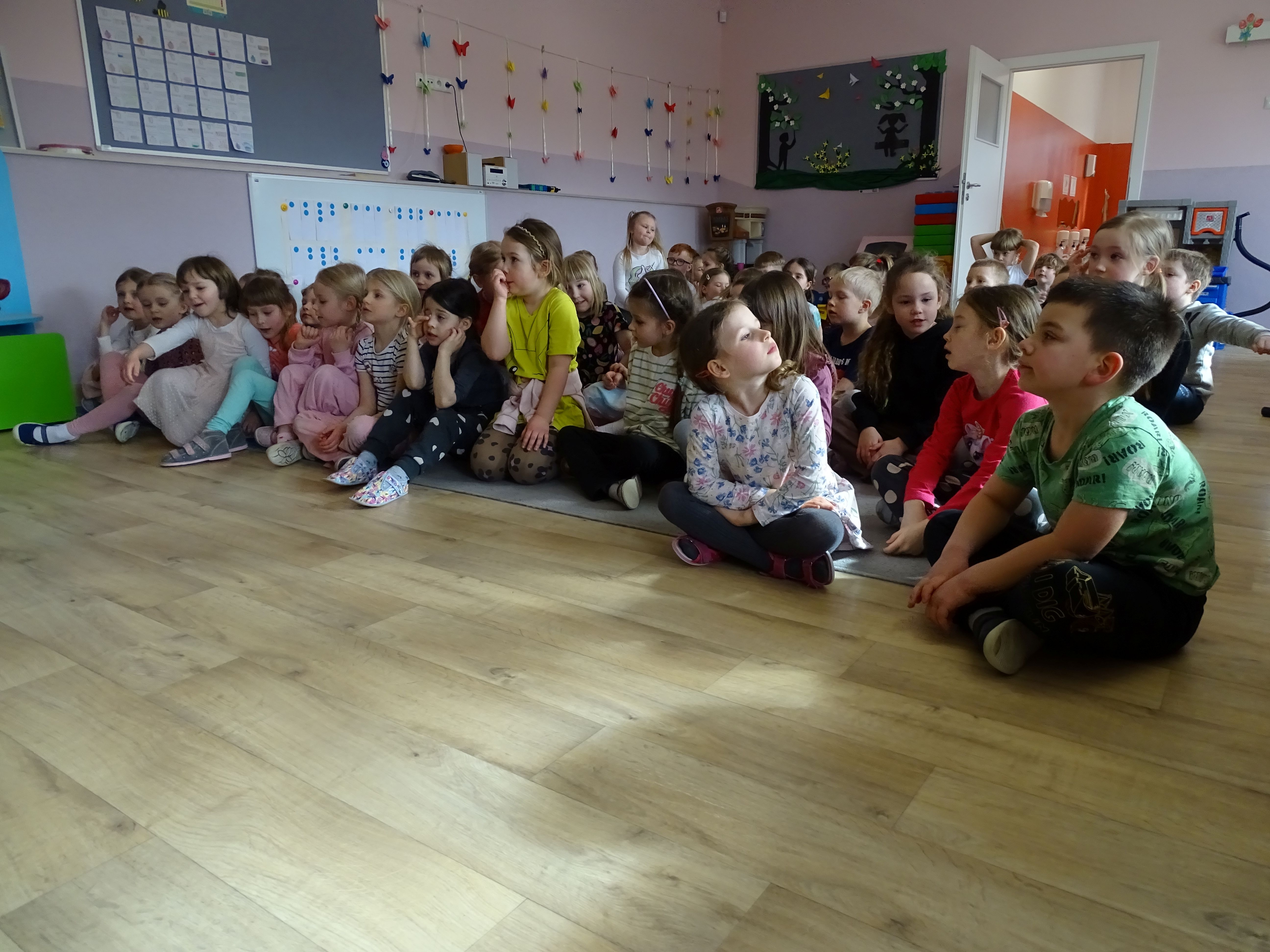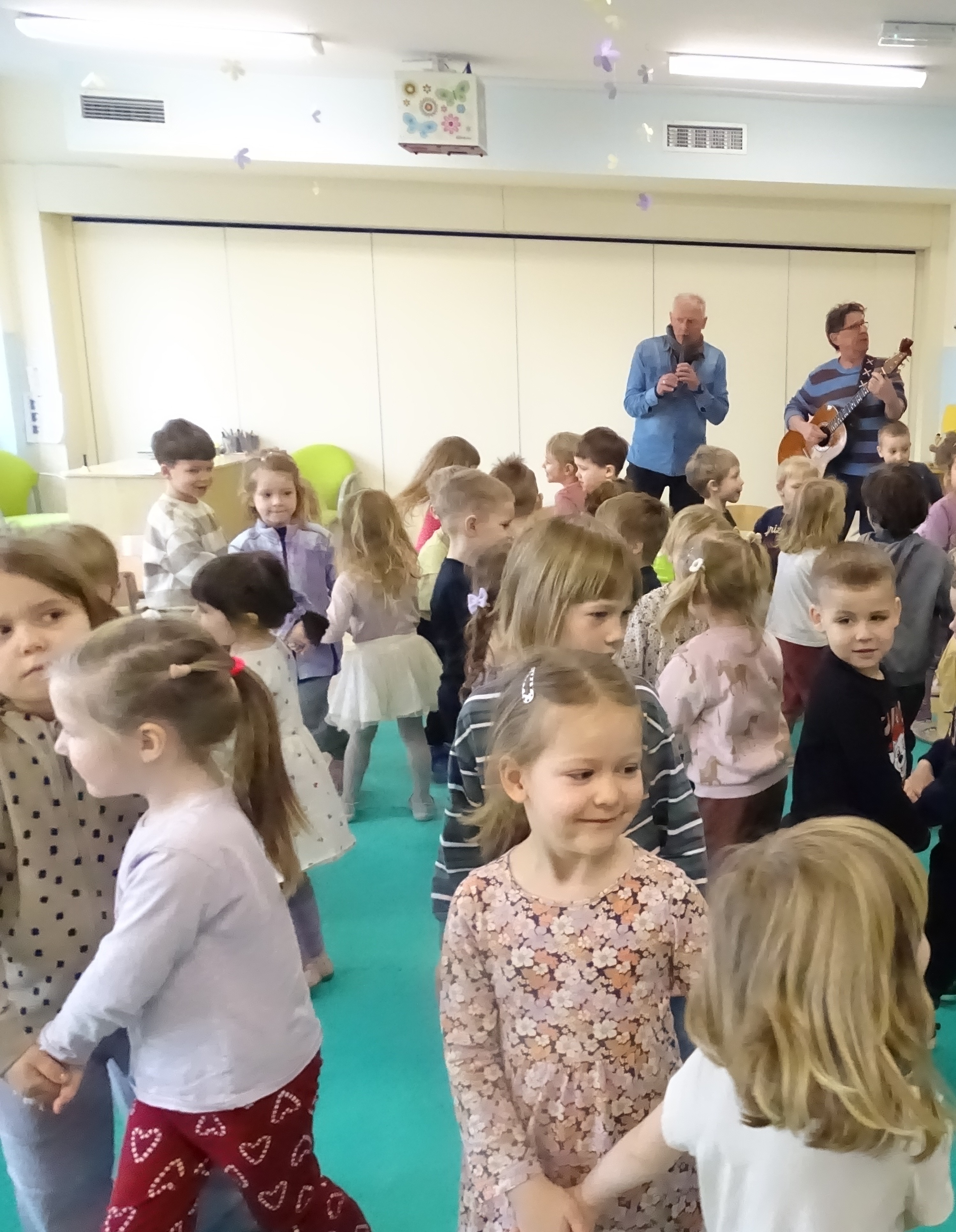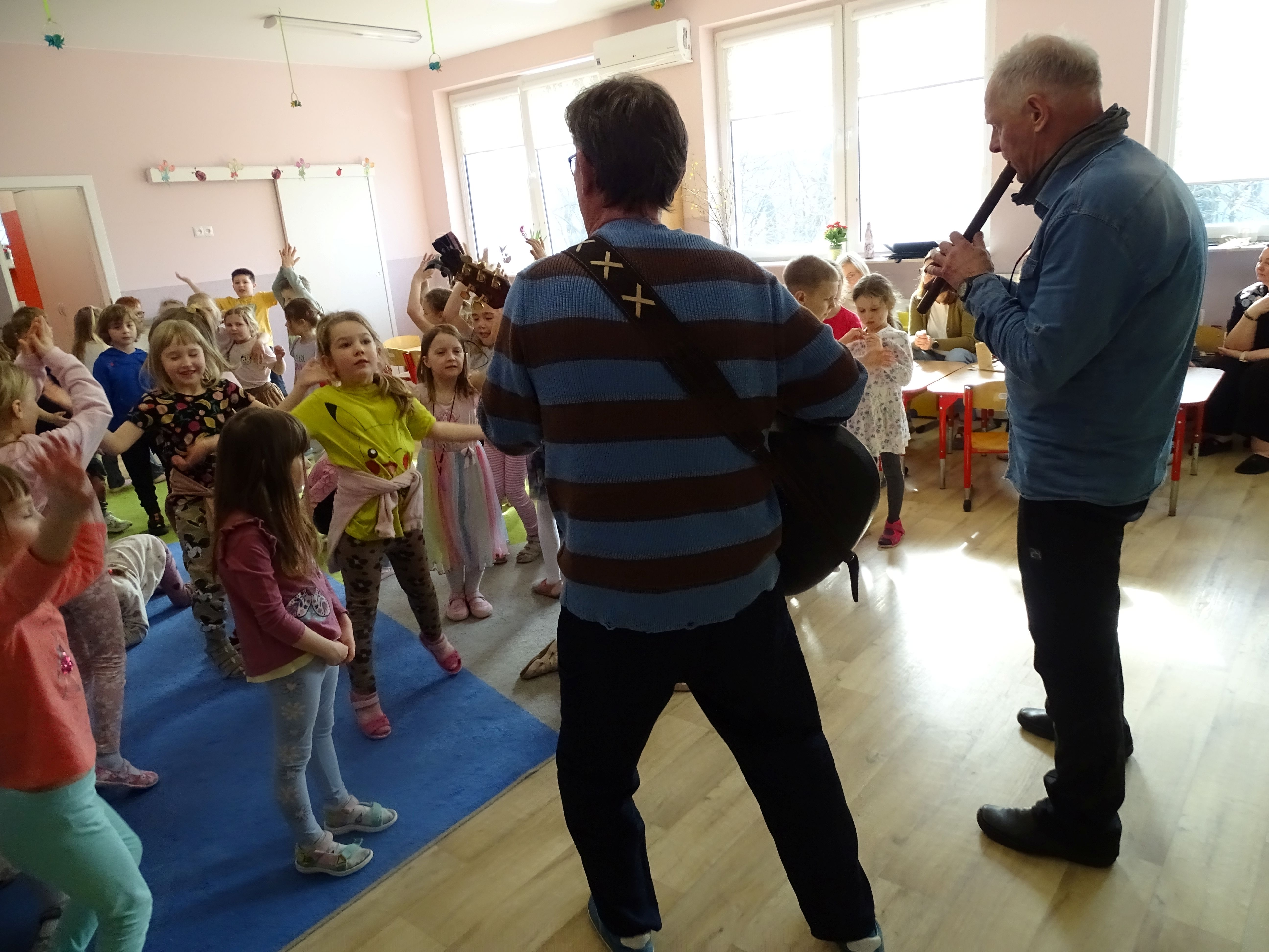 3 marca nasze przedszkolaki wzięły udział w wesołym koncercie Zespołu Puch-Puch pt. „Marcowe sprzątanko”. Tematem spotkania był Puszkowiec – perkusja eko, czyli niezwykłe instrumenty wykonane z puszek i innych materiałów do recyklingu. Dzieci z zaciekawieniem słuchały muzyki, poznawały dźwięki ekologicznej perkusji, a także aktywnie uczestniczyły w zabawie. Wspólnie śpiewały, tańczyły i rytmicznie klaskały, tworząc prawdziwą muzyczną atmosferę. Podczas koncertu przedszkolaki symbolicznie budziły wiosnę, bawiąc się i ciesząc nadchodzącą porą roku. Było dużo radości, śmiechu i dobrej energii.