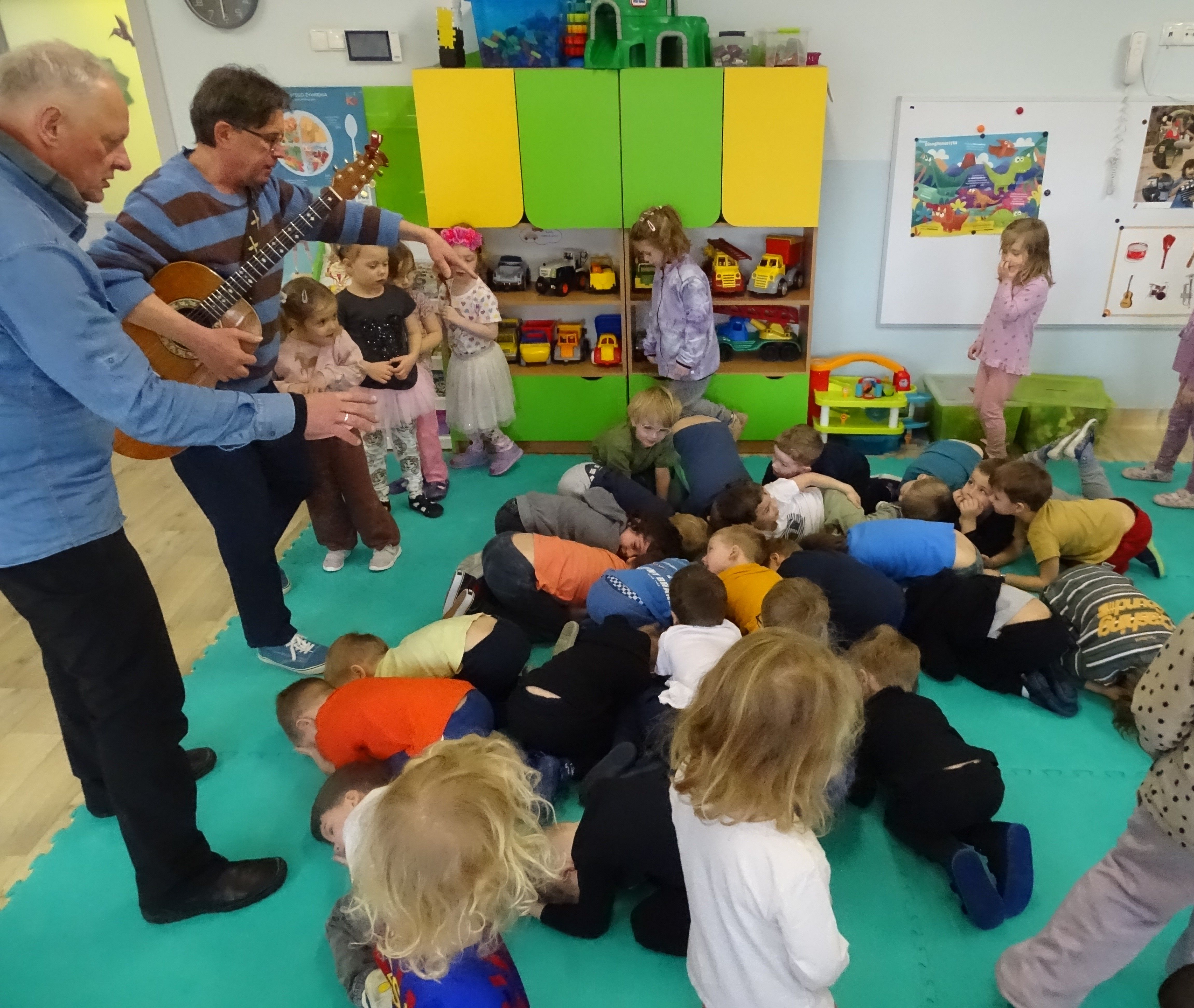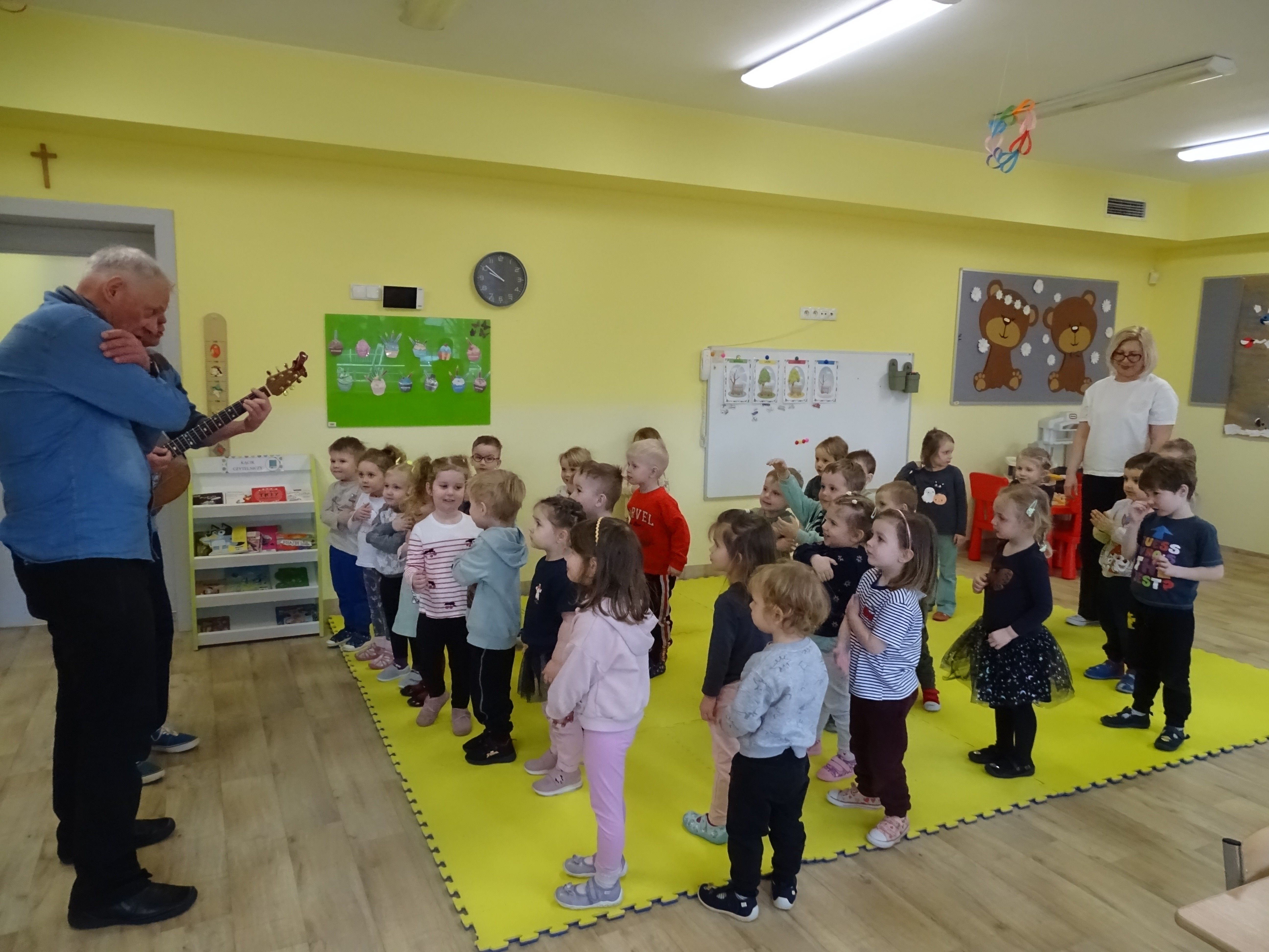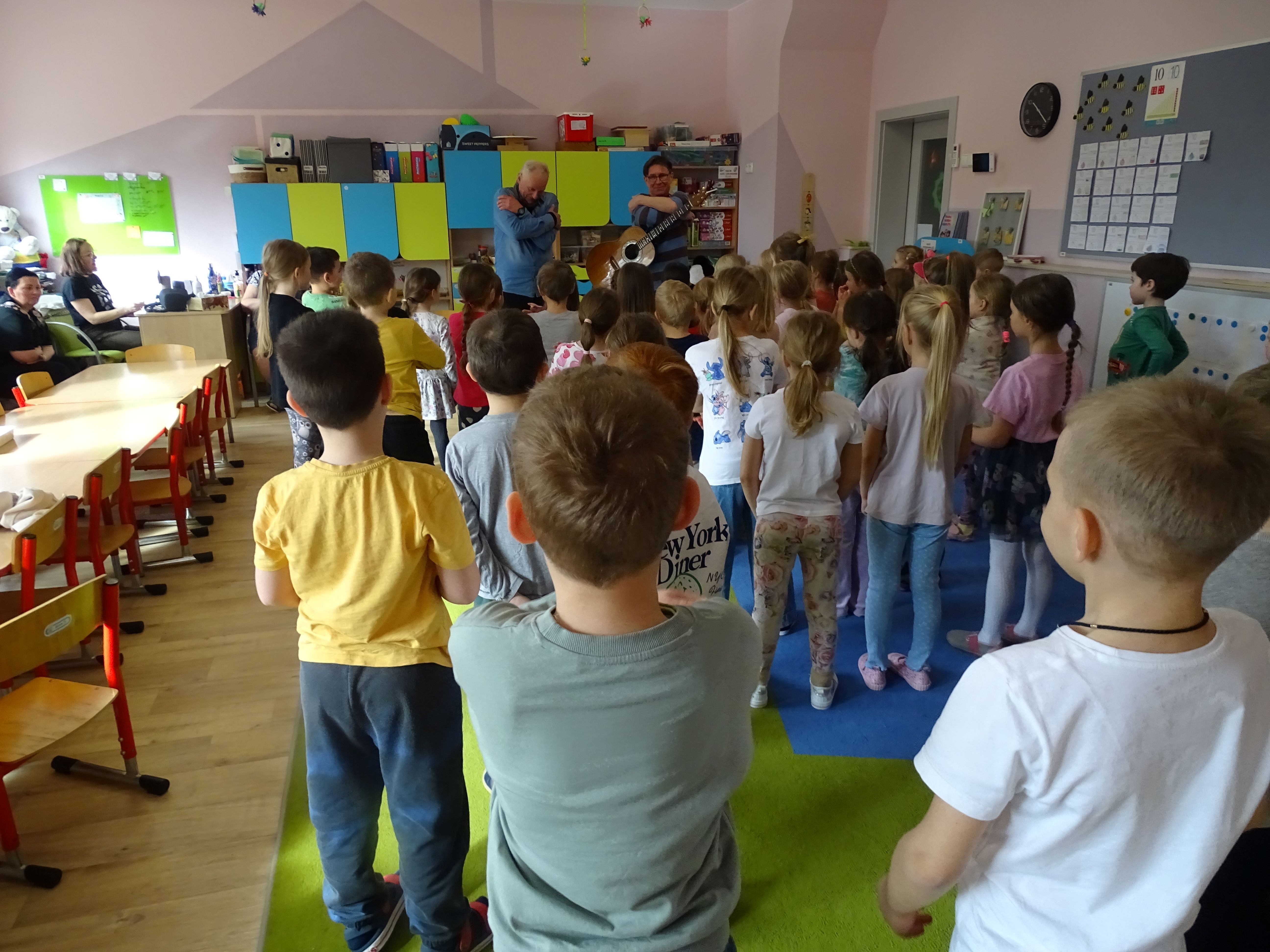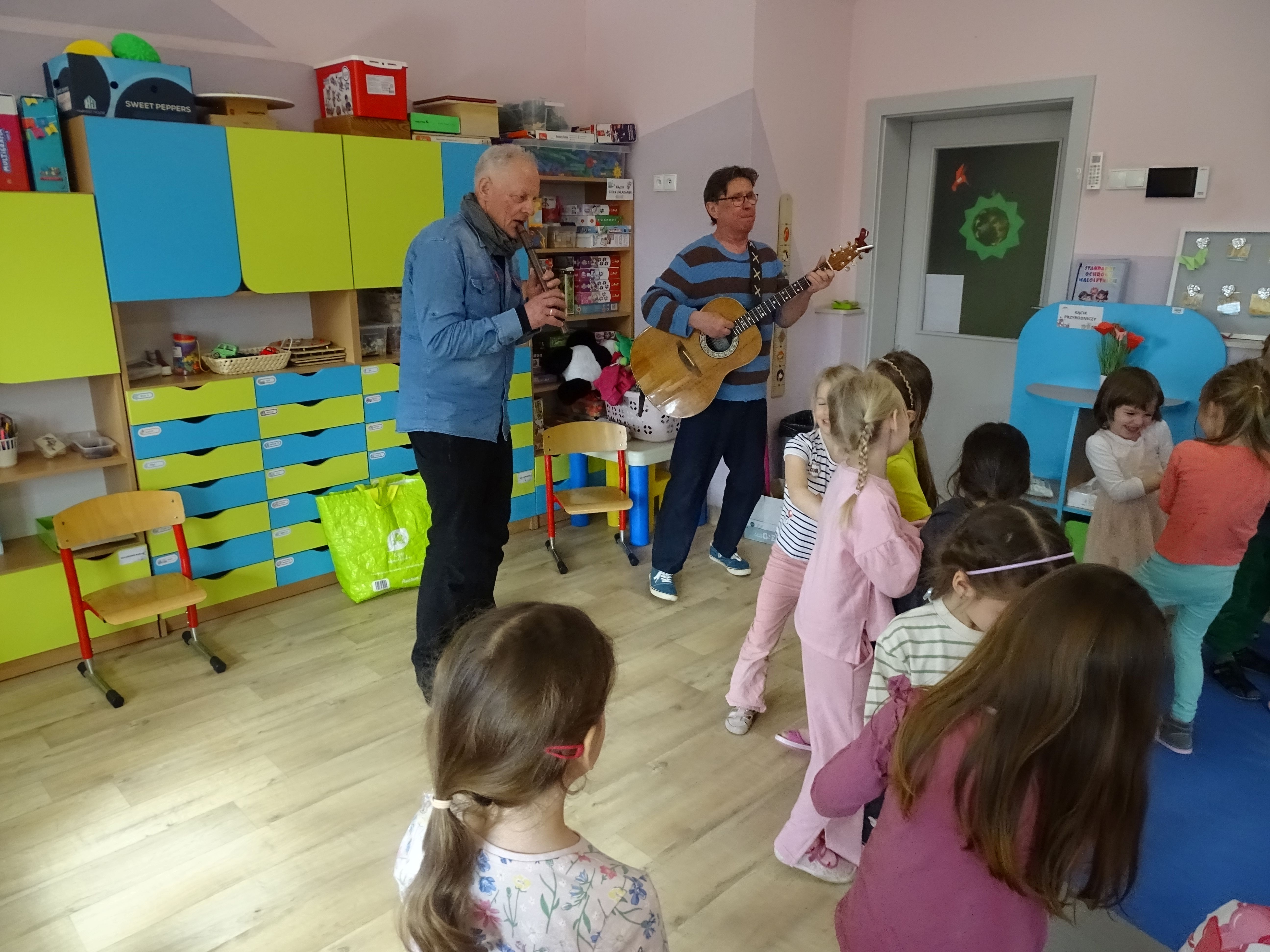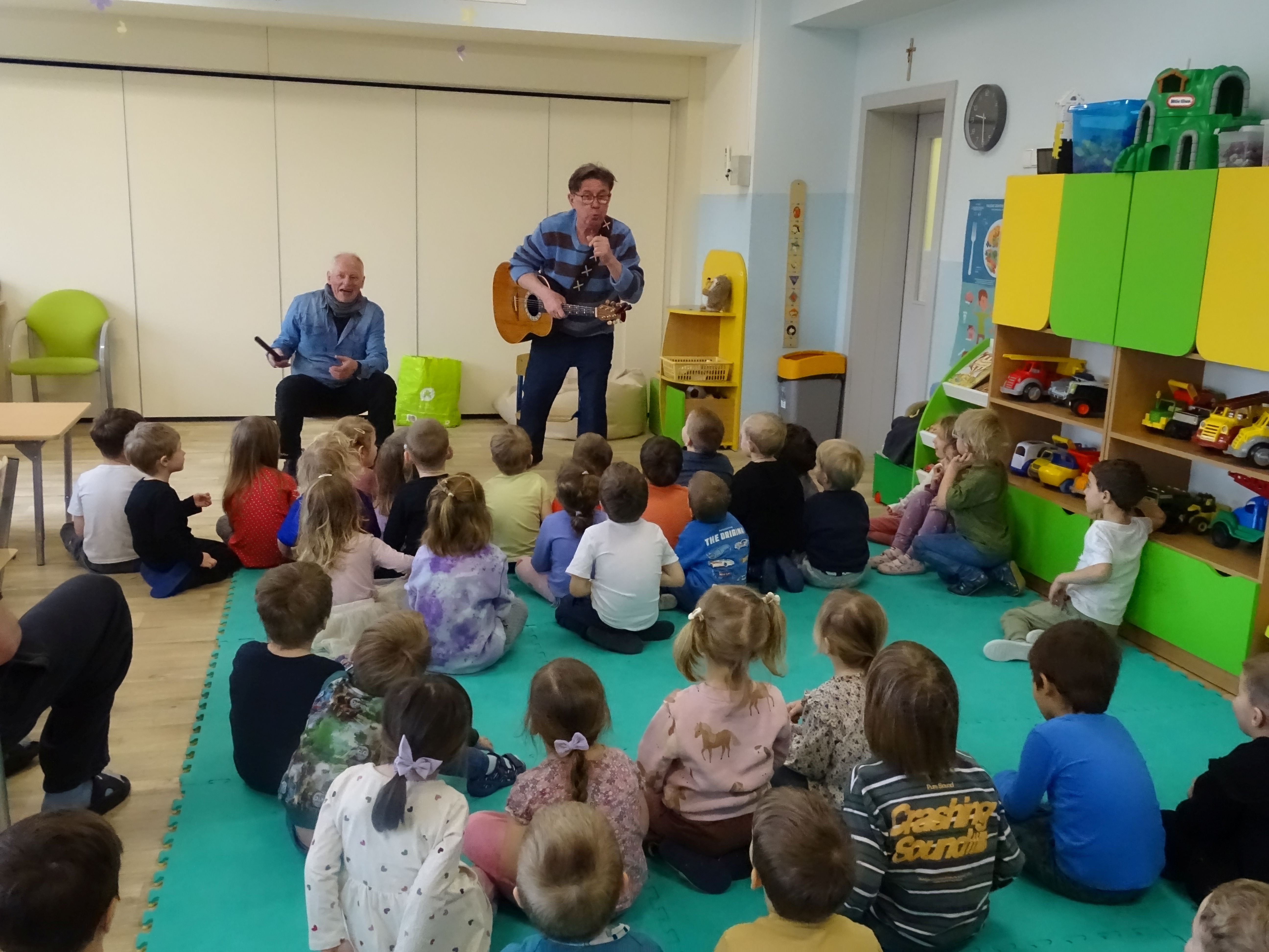 3 marca nasze przedszkolaki wzięły udział w wesołym koncercie Zespołu Puch-Puch pt. „Marcowe sprzątanko”. Tematem spotkania był Puszkowiec – perkusja eko, czyli niezwykłe instrumenty wykonane z puszek i innych materiałów do recyklingu. Dzieci z zaciekawieniem słuchały muzyki, poznawały dźwięki ekologicznej perkusji, a także aktywnie uczestniczyły w zabawie. Wspólnie śpiewały, tańczyły i rytmicznie klaskały, tworząc prawdziwą muzyczną atmosferę. Podczas koncertu przedszkolaki symbolicznie budziły wiosnę, bawiąc się i ciesząc nadchodzącą porą roku. Było dużo radości, śmiechu i dobrej energii.