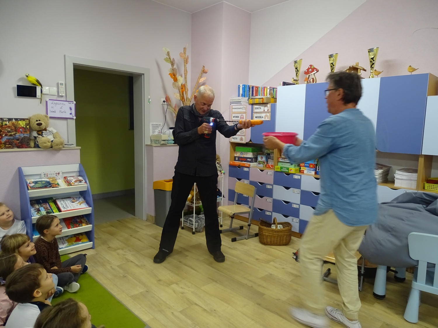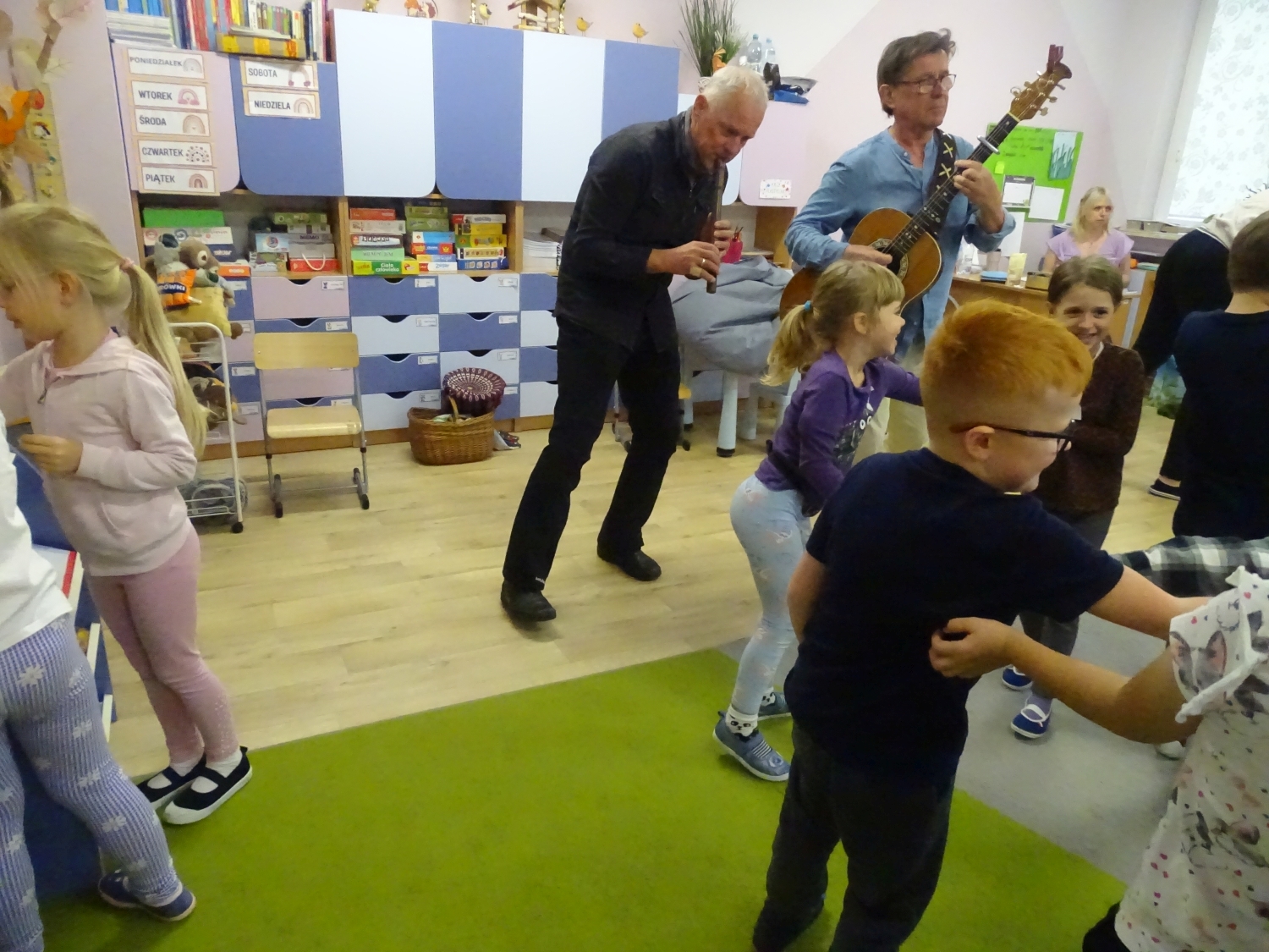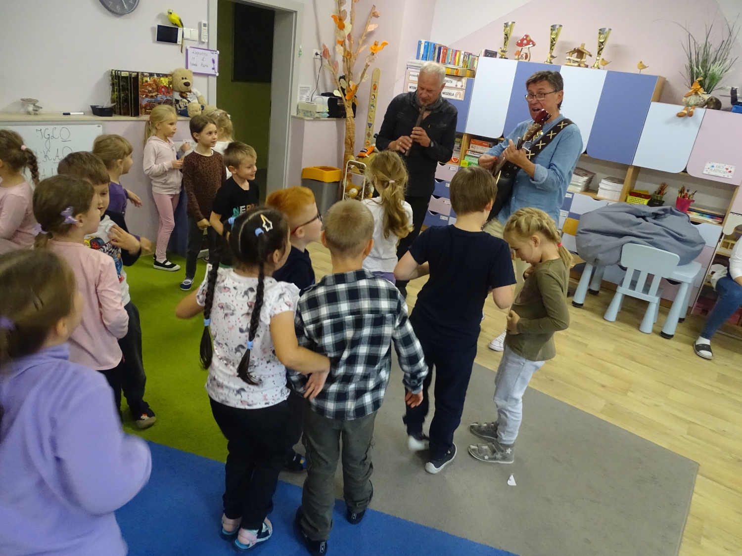 W naszym przedszkolu gościł zespół Puch-Puch z wesołym koncertem „Muzyczne smaczki”. Dzieci słuchały pięknych melodii, poznawały ciekawe instrumenty i razem z artystami śpiewały oraz tańczyły. Było dużo śmiechu, rytmu i dobrej zabawy! Dzięki zespołowi Puch-Puch przekonaliśmy się, że muzyka może być naprawdę pyszna – tak jak najlepsze smakołyki! A na zakończenie dzieci mogły się przekonać jak brzmi flet zrobiony z .......marchewki!