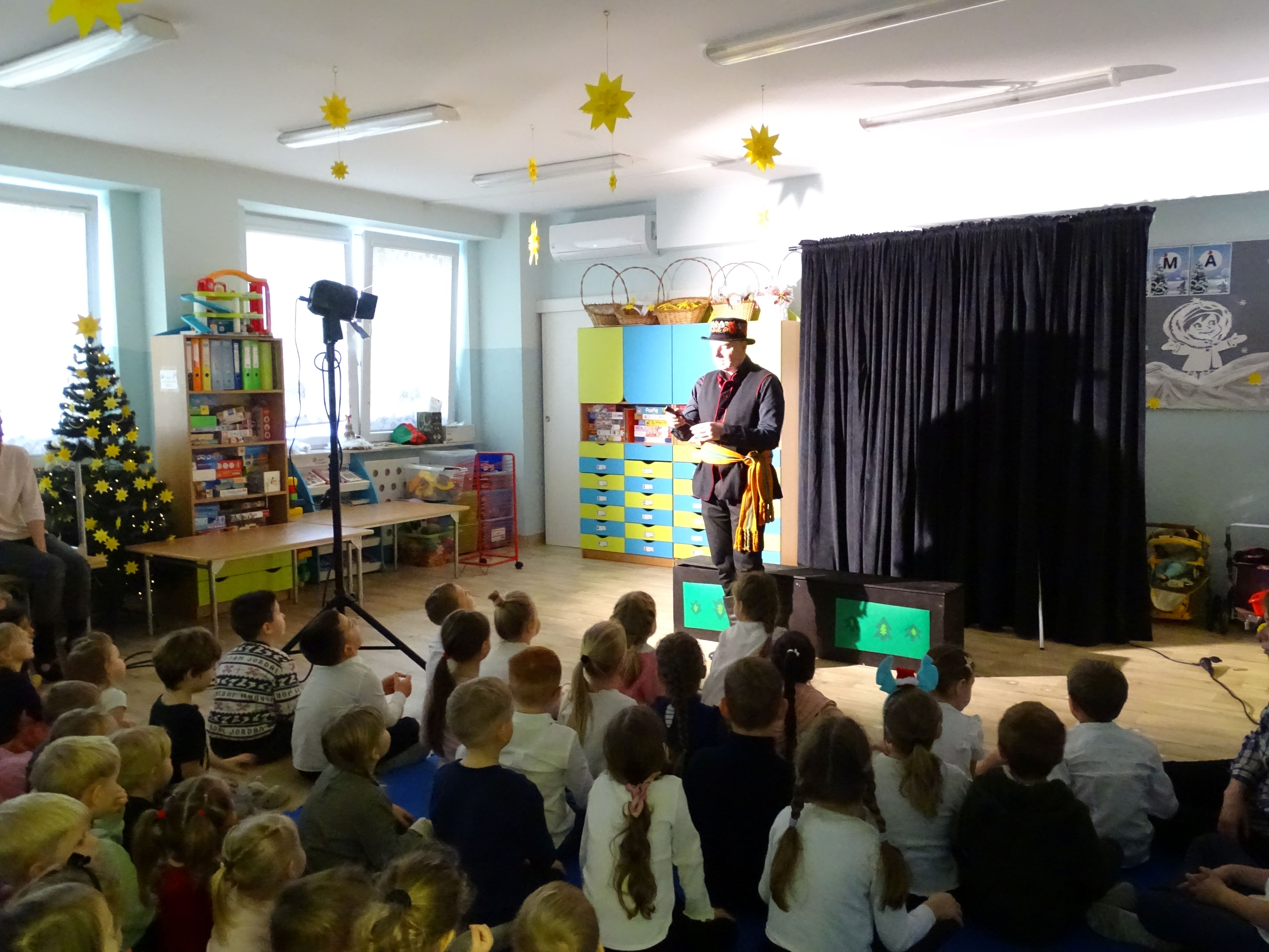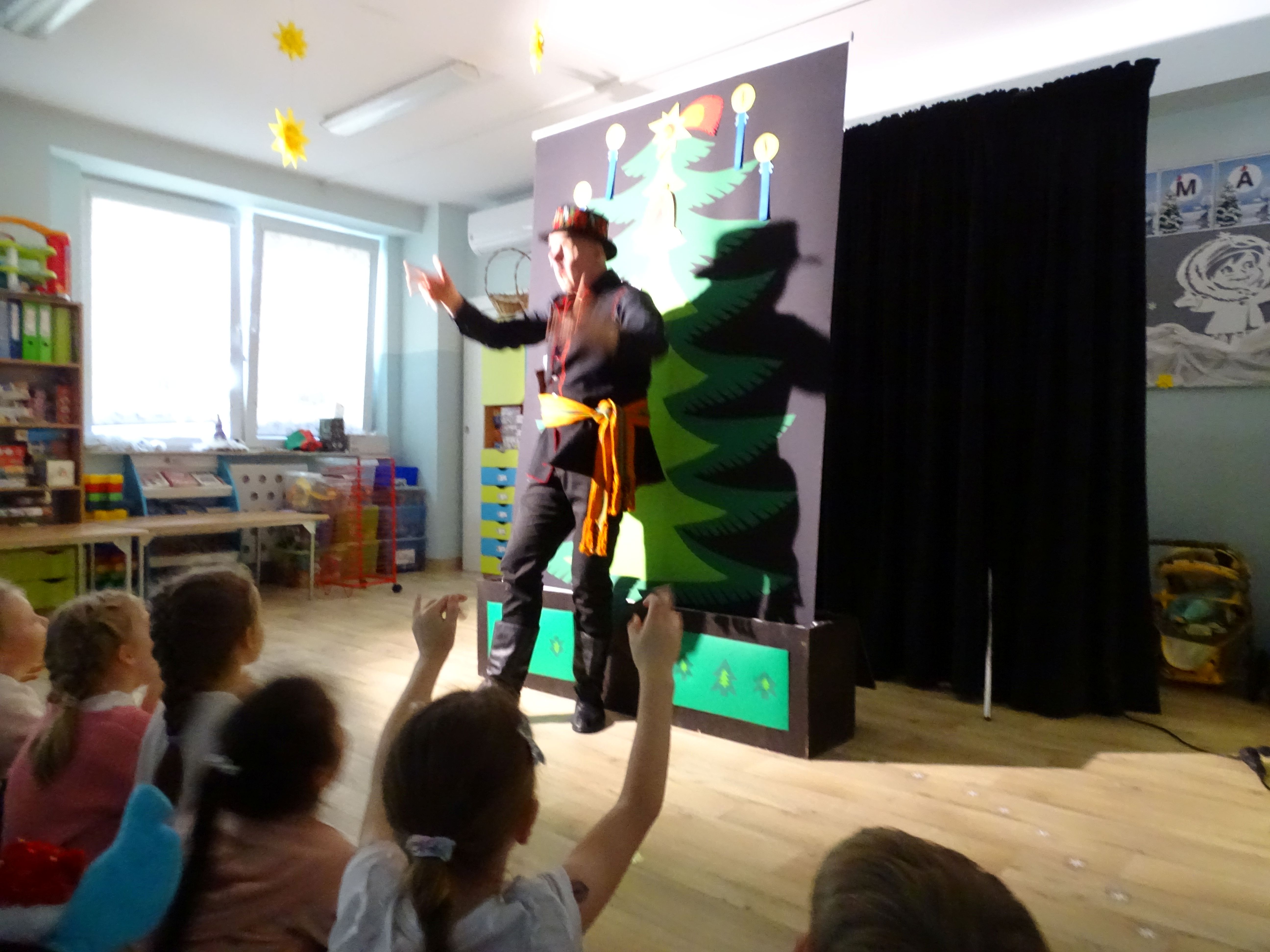 10 grudnia nasze przedszkole odwiedził Teatr Falkoshow z przedstawieniem pt. Choinka. Spektakl miał formę teatru magnesu i był inspirowany łowicką sztuką ludową. W przedstawieniu wzięły udział animowane ozdoby choinkowe, które w połączeniu z piękną muzyką przybliżyły dzieciom swoją symbolikę. Bałwanek, który skradł serca naszych przedszkolaków pozwolił im w przystępny i wesoły sposób poznać sens świątecznych dekoracji.