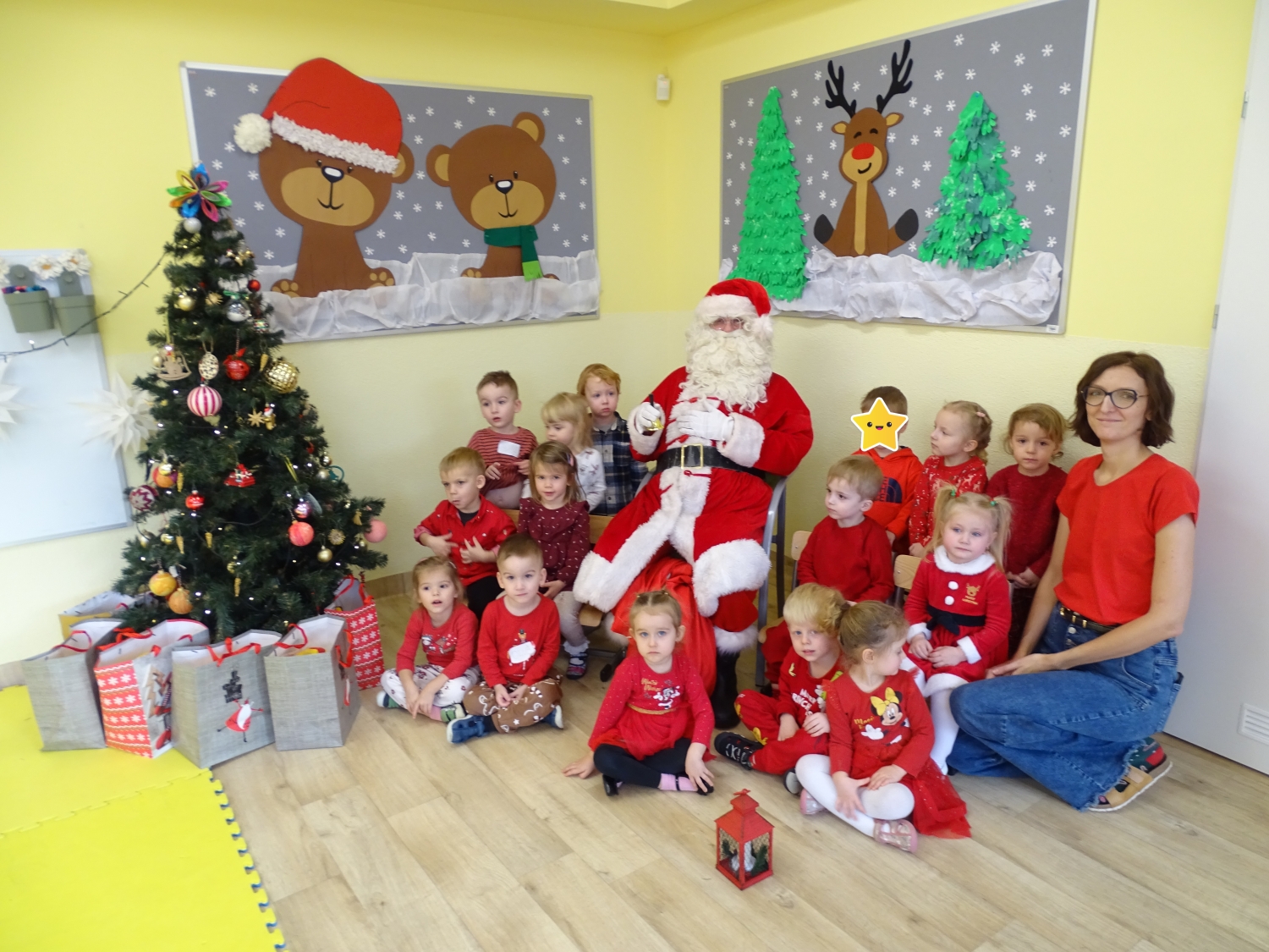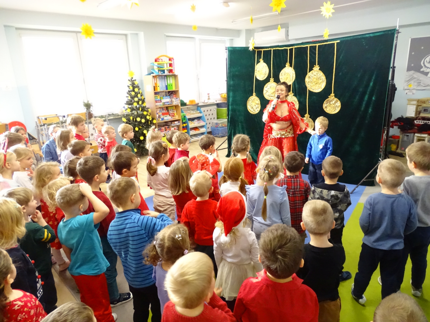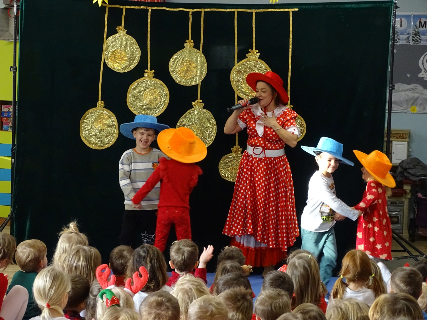 Do naszego przedszkola zawitał Teatr Prima ze spektaklem „Jakiż to święty rozdaje prezenty? Zwyczaje mikołajowe z różnych stron świata”. Przedstawienie w ciekawy i przystępny sposób przybliżyło najmłodszym postać św. Mikołaja oraz mikołajowe tradycje z różnych krajów. Kolorowe kostiumy, muzyka i humorystyczne sceny wzbudziły duże zainteresowanie dzieci, zachęcając je do aktywnego udziału w przedstawieniu. Występ dostarczył przedszkolakom wielu radości i był okazją do poznania różnorodnych zwyczajów związanych z obdarowywaniem prezentami. Na koniec zawitał do nas św. Mikołaj, który wzbudził ogromne zainteresowanie wśród dzieci.