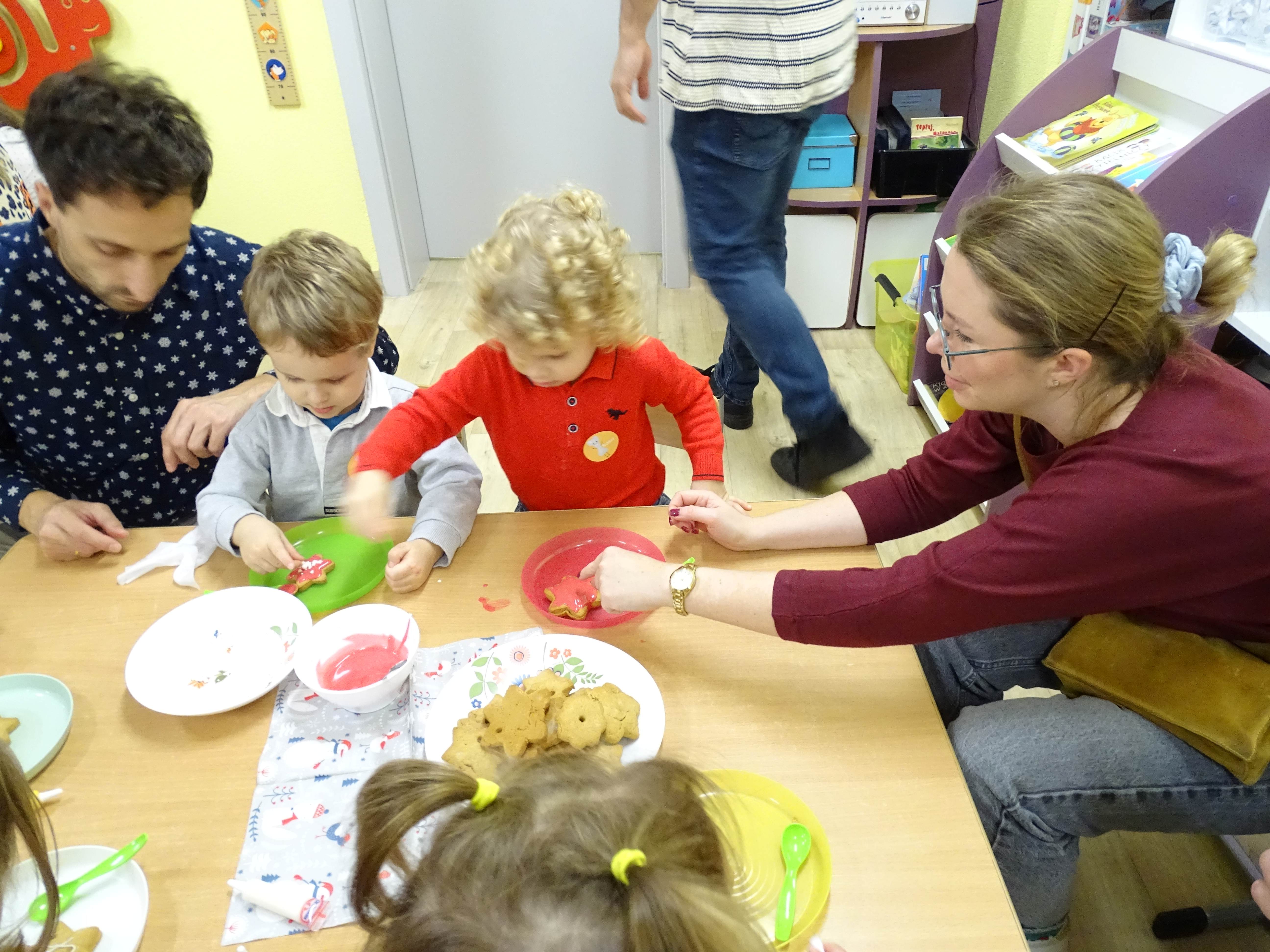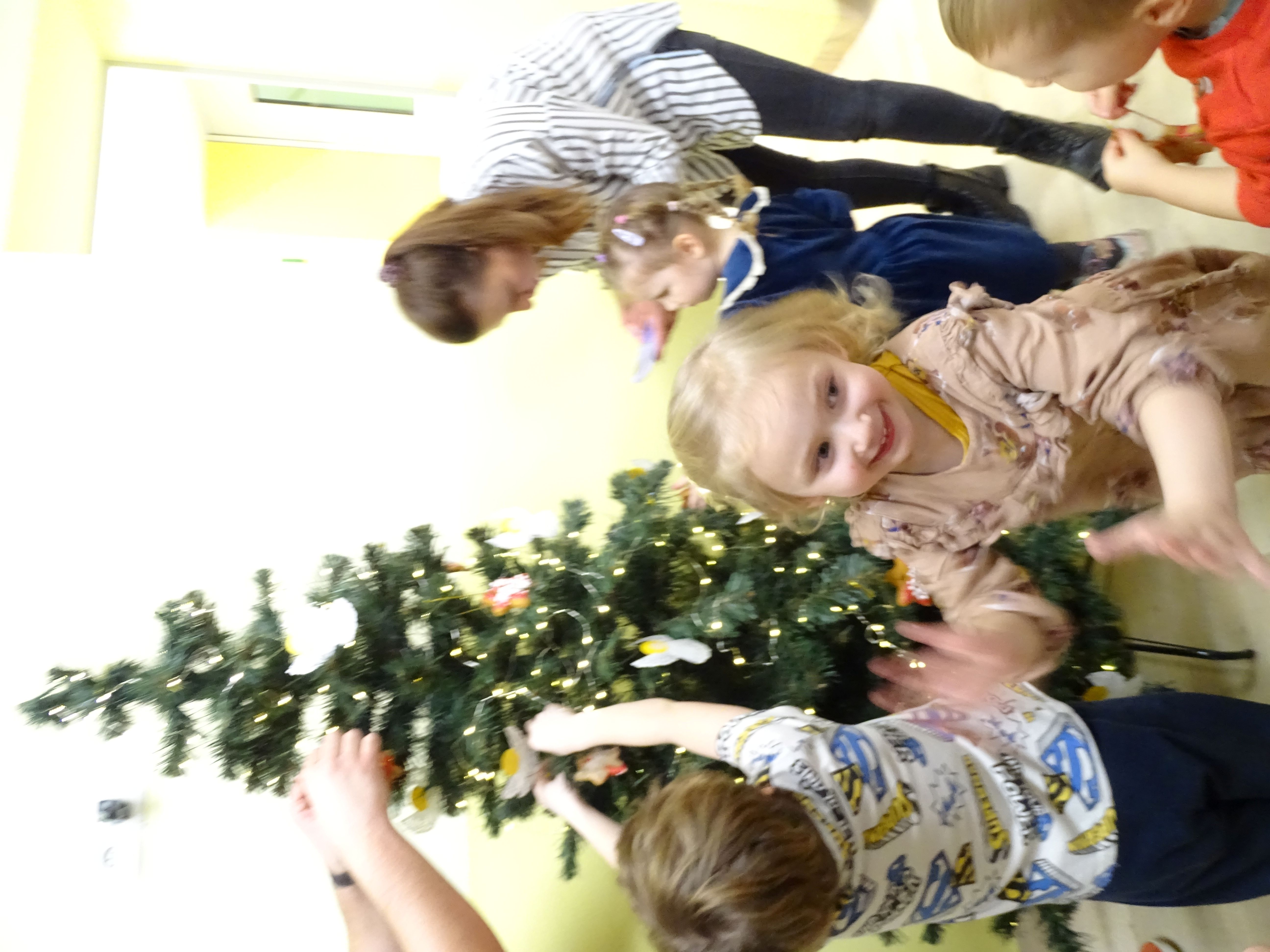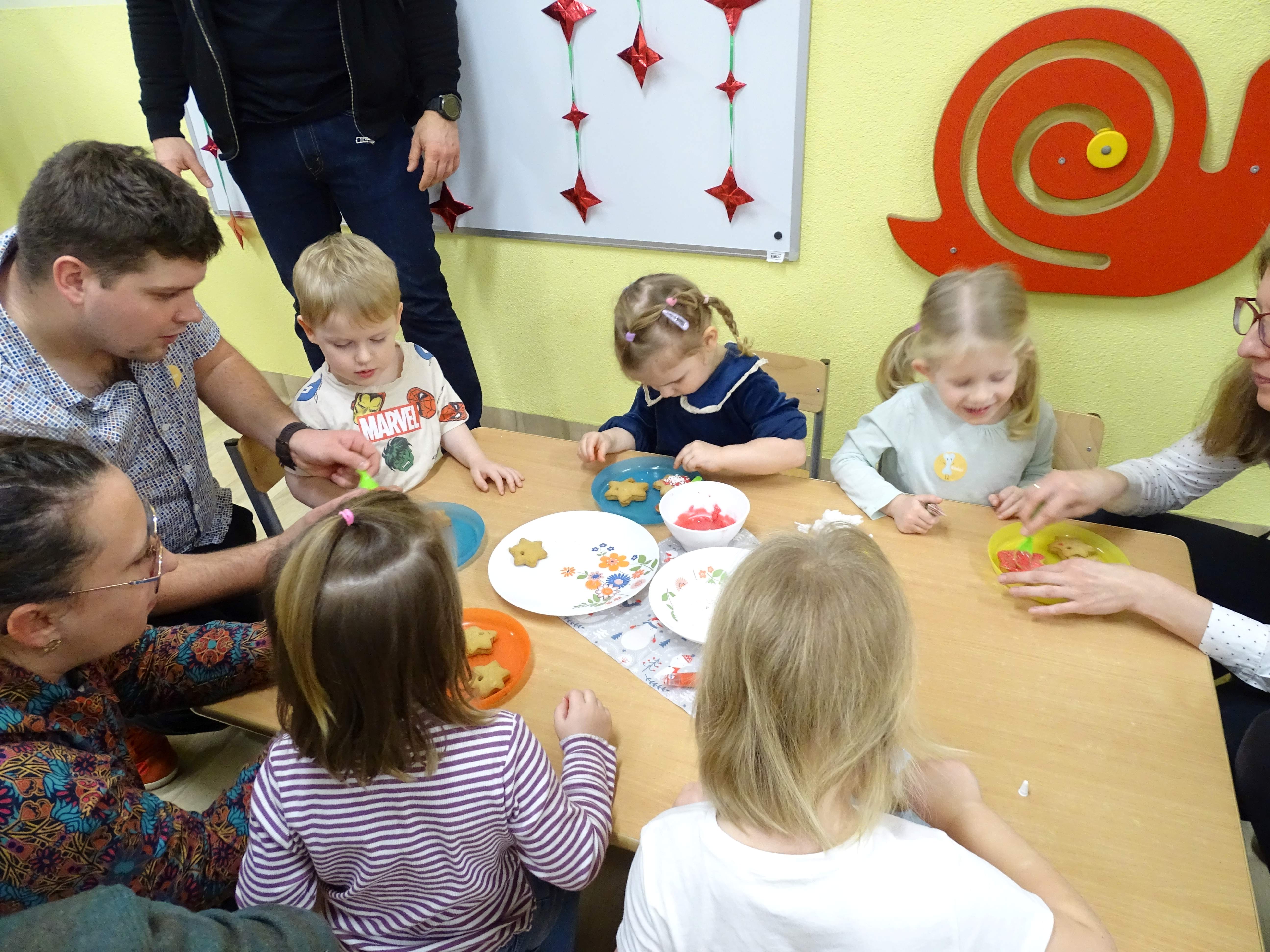 9 grudnia w najmłodszej grupie odbyło się spotkanie z udziałem rodziców. Uroczystość rozpoczęła się krótkim występem dzieci o tematyce świąteczno - zimowej. Po części artystycznej nastąpiła wspólna część warsztatowa – dekorowanie pierników. Dzieci razem z rodzicami ozdabiały wcześniej upieczone ciasteczka kolorowymi lukrami i posypkami. Był to czas pełen radości, rozmów i wzajemnej współpracy. Spotkanie przebiegło w miłej, świątecznej atmosferze, sprzyjało integracji rodzin z przedszkolem oraz wzmacniało więzi między dziećmi a rodzicami.
