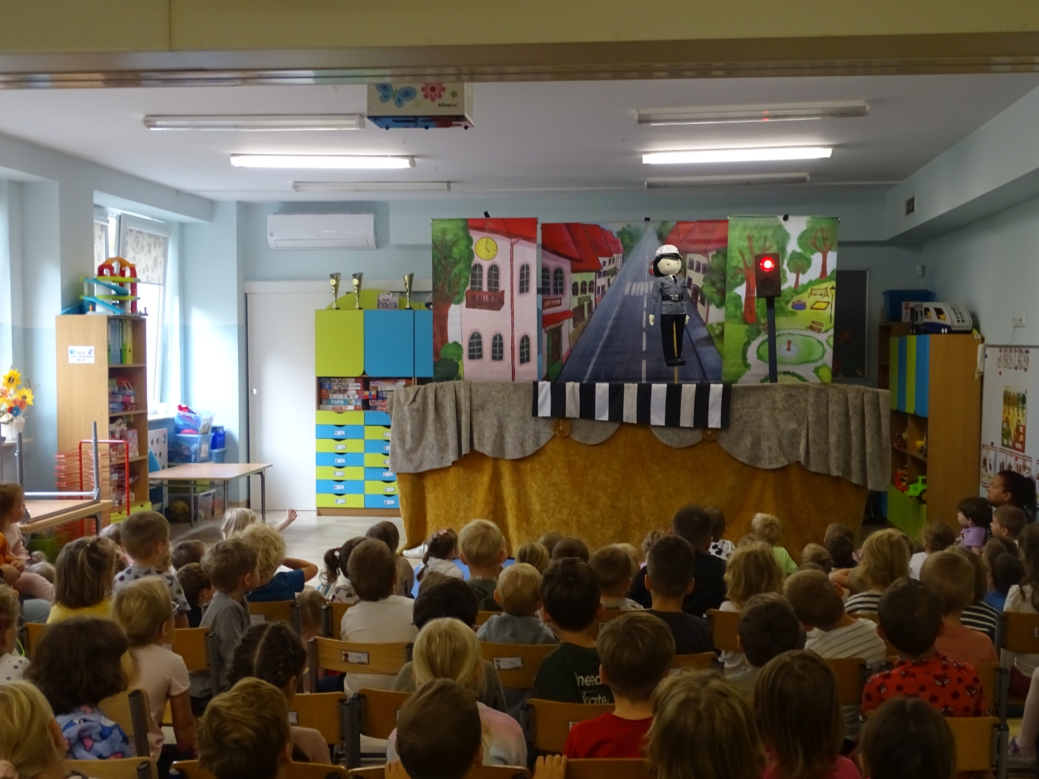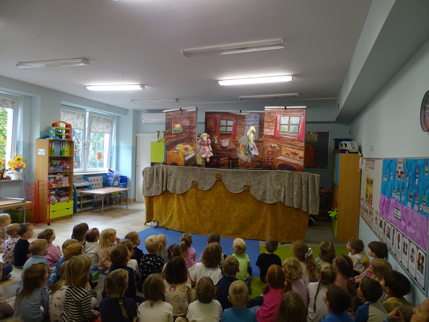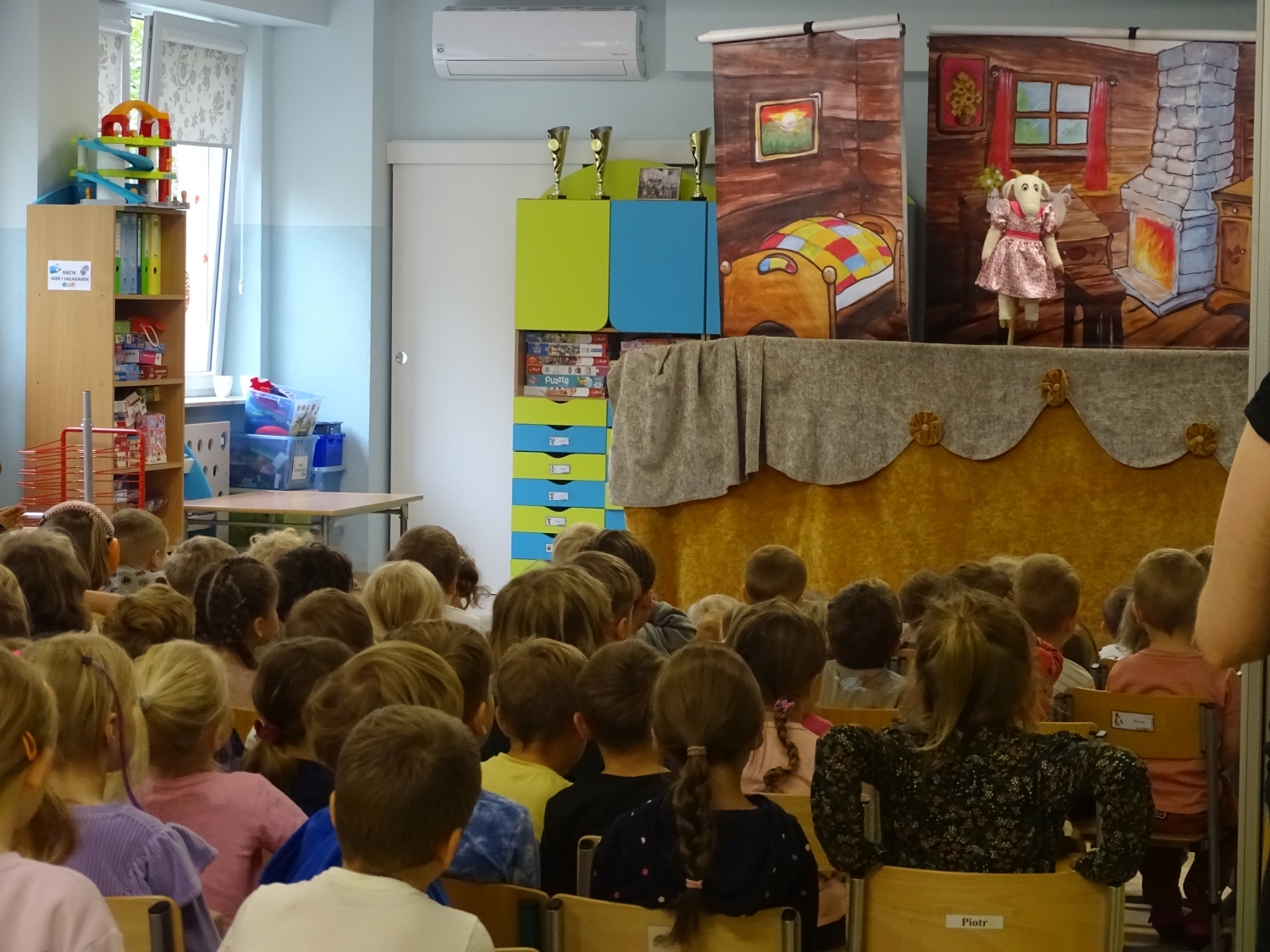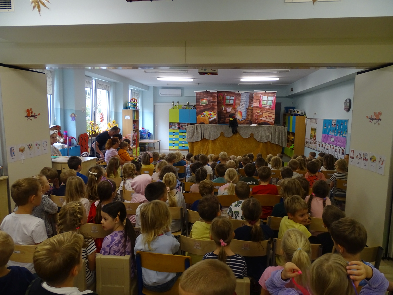 W naszym przedszkolu gościł Teatr Lalek Bajka ze spektaklem "Cenne rady". Historia opowiadała o małym, ciekawskim bohaterze, który nie zawsze słuchał dorosłych i przez to wpadał w różne zabawne, ale i pouczające kłopoty. Na swojej drodze spotykał rozmaite postacie – mądrą sowę, pracowitego jeża, leniwego zająca i sprytną lisicę – które udzielały mu tytułowych „cennych rad”. Dzięki ich wskazówkom bohater zrozumiał, jak ważne jest słuchanie starszych, pomaganie innym i odpowiedzialne zachowanie. Dzieci z dużym zainteresowaniem oglądały występ, żywo reagowały na wydarzenia na scenie i chętnie uczestniczyły w zabawie. Było to pouczające i radosne spotkanie ze sztuką teatralną, które na długo pozostanie w pamięci przedszkolaków.