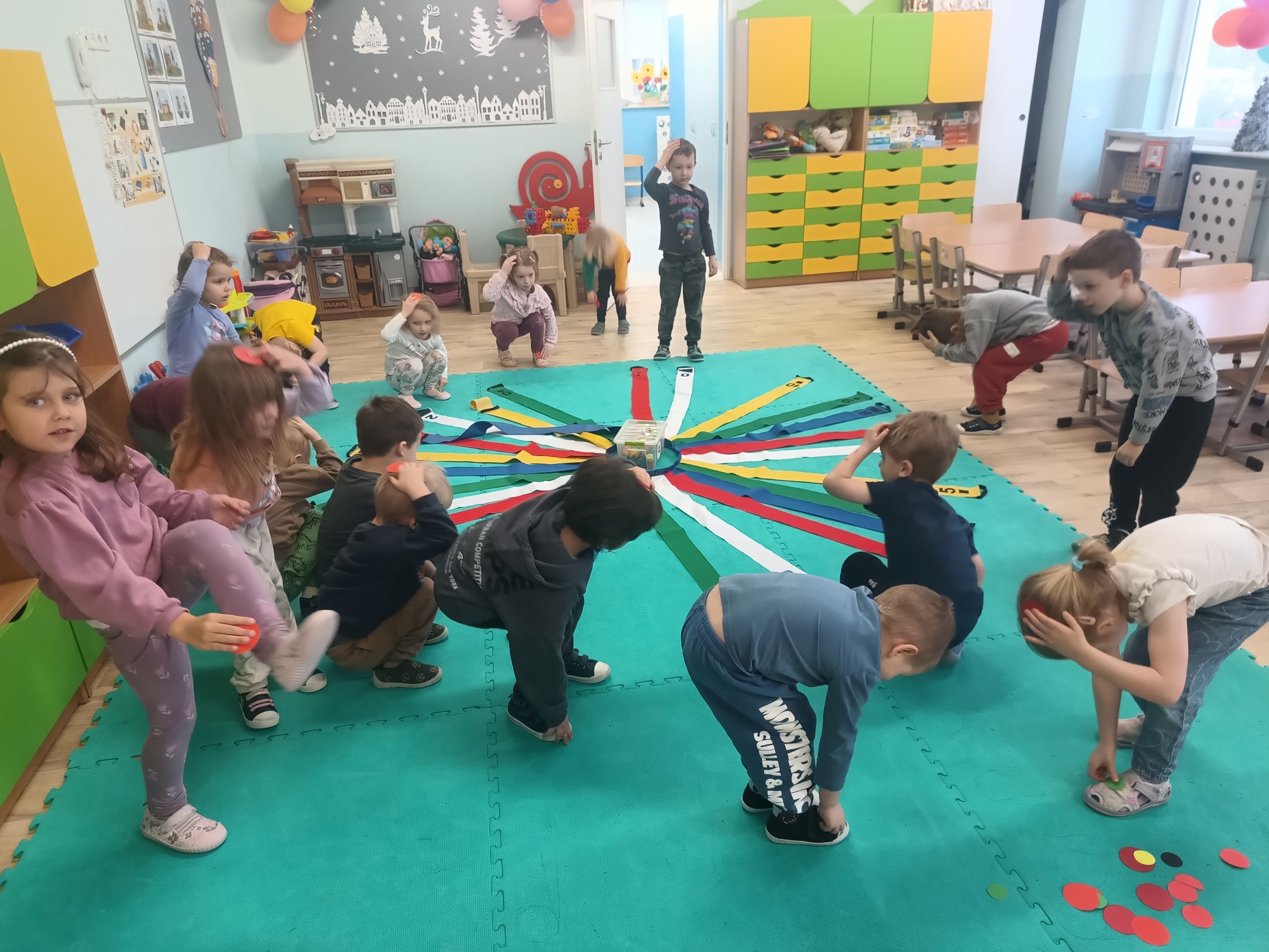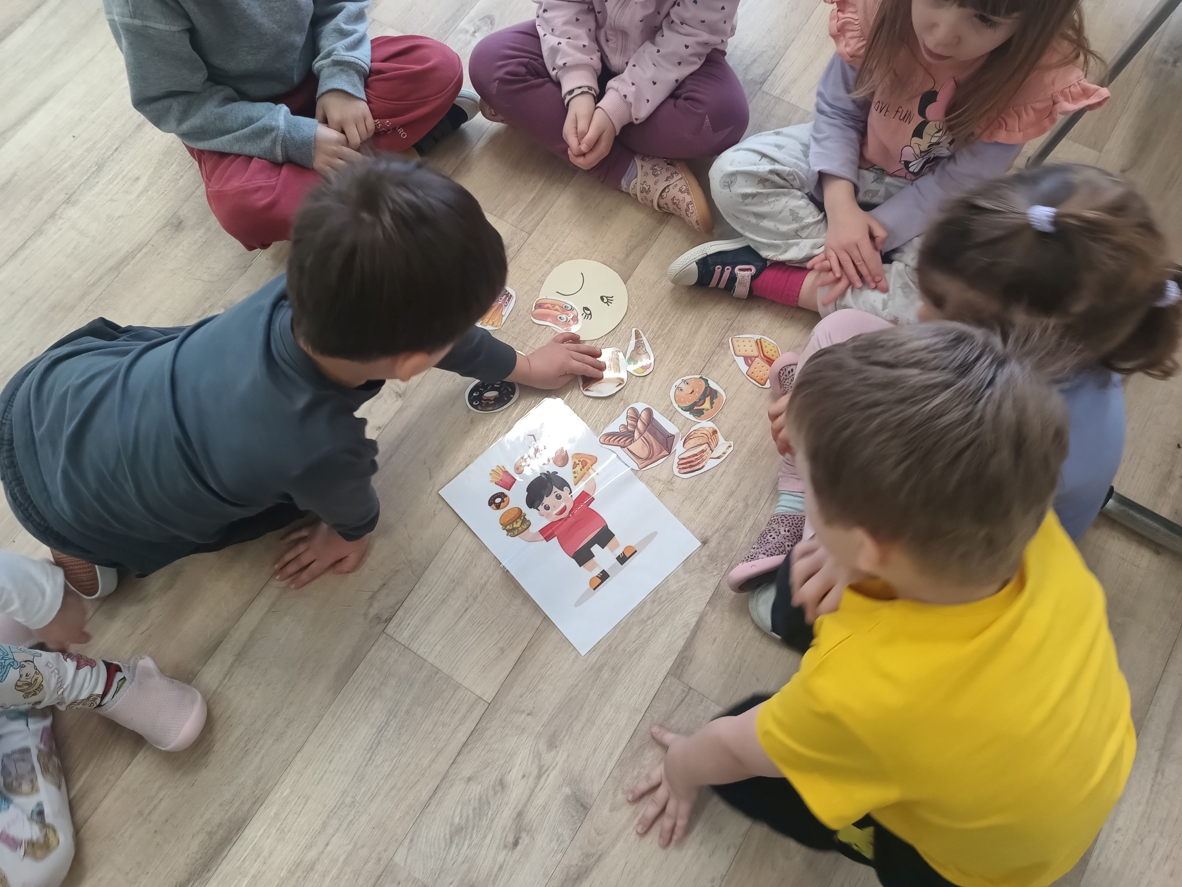 Dużym zainteresowaniem cieszyło się „Koło fortuny” – po zakręceniu kołem dzieci wykonywały wylosowane ćwiczenia. W całym przedszkolu rozmieszczone zostały stacje aktywności ruchowej, zachęcające do krótkiej gimnastyki i aktywnej przerwy w ciągu dnia. Dzieci miały także możliwość nazywania i wyrażania swoich emocji – przy specjalnym plakacie. Na korytarzach pojawiły się również ciekawostki o warzywach i owocach, dzięki którym przedszkolaki mogły poszerzyć swoją wiedzę o zdrowym odżywianiu.