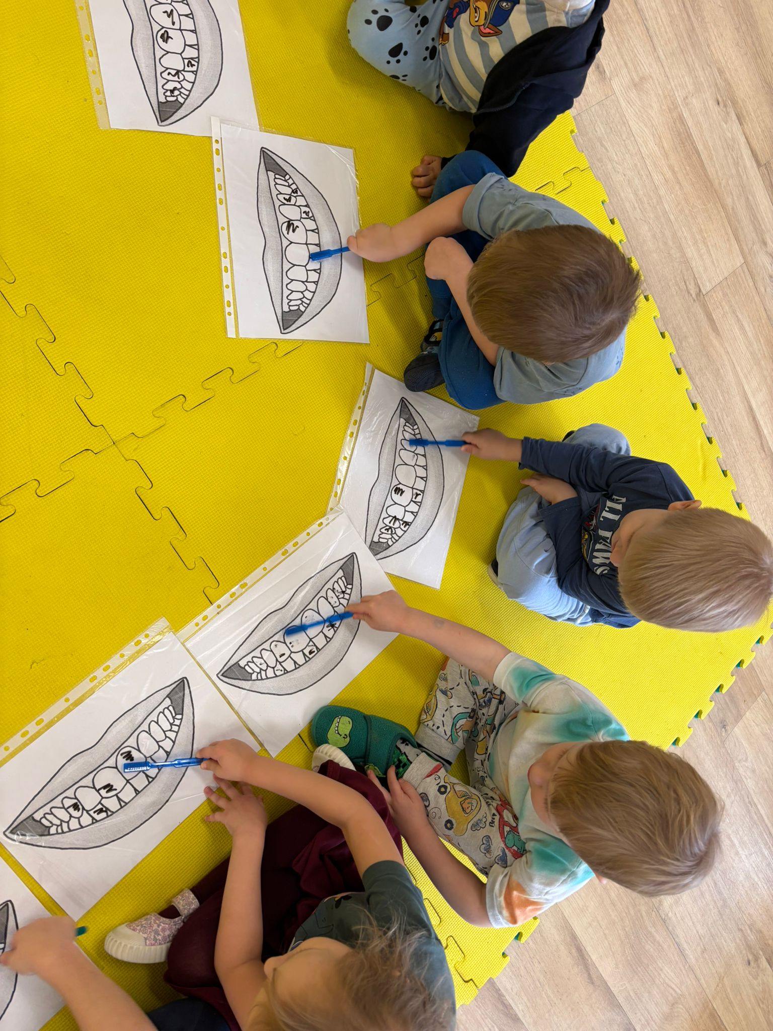W listopadzie w grupie Stokrotki odbył się cykl zajęć poświęconych zdrowiu. Już od najmłodszych lat przedszkolaki uczą się, że prawidłowa higiena, zdrowe odżywianie i codzienny ruch - zarówno podczas zajęć jak i na świeżym powietrzu na placu zabaw - to podstawa dobrego samopoczucia. Dzieci z dużym zaangażowaniem brały udział w proponowanych aktywnościach – chętnie wykonywały zadania, ćwiczyły, a także dzieliły się swoimi doświadczeniami. Dzięki temu zdobywanie nowych, zdrowych nawyków stało się dla nich świetną zabawą.