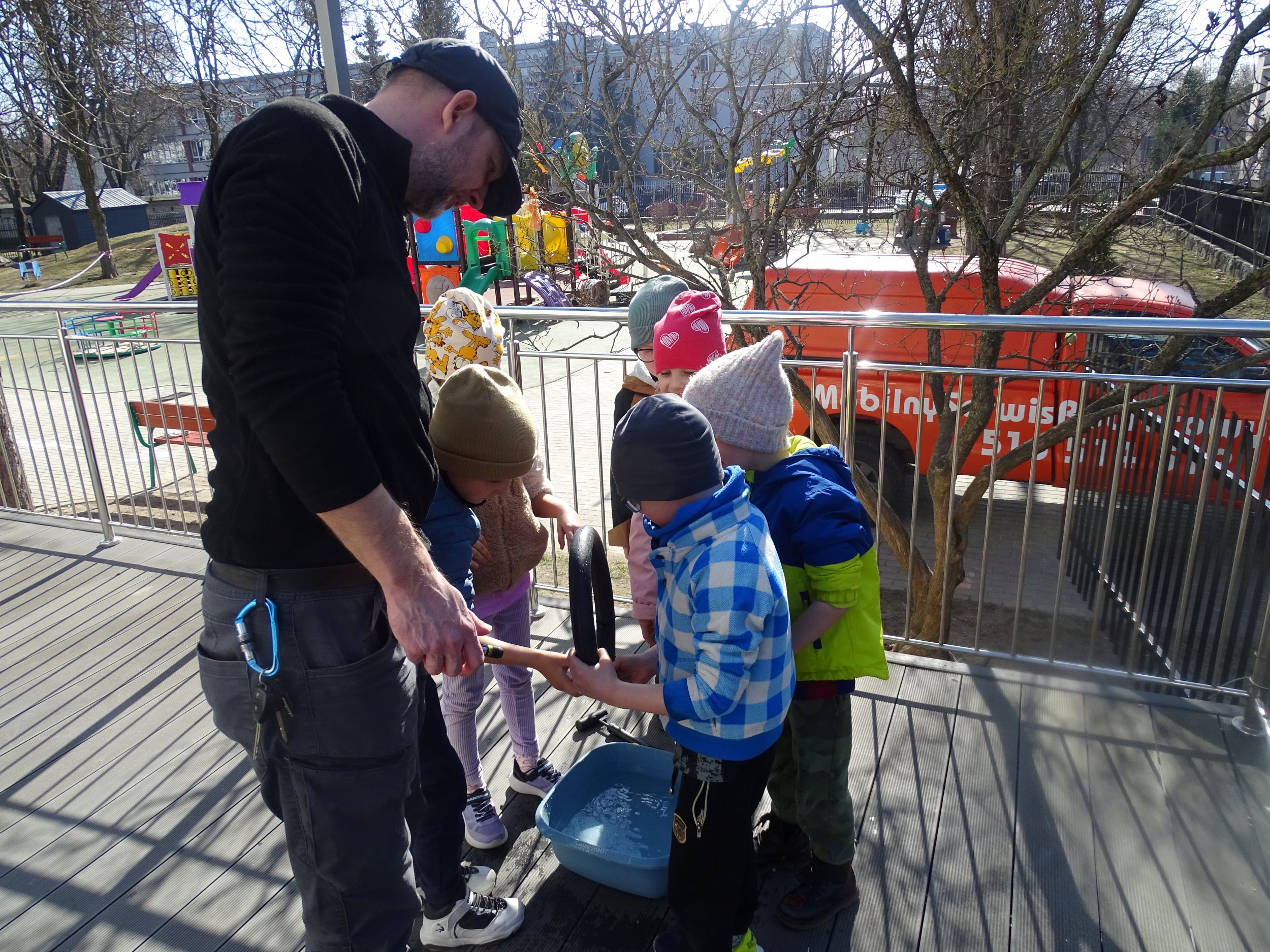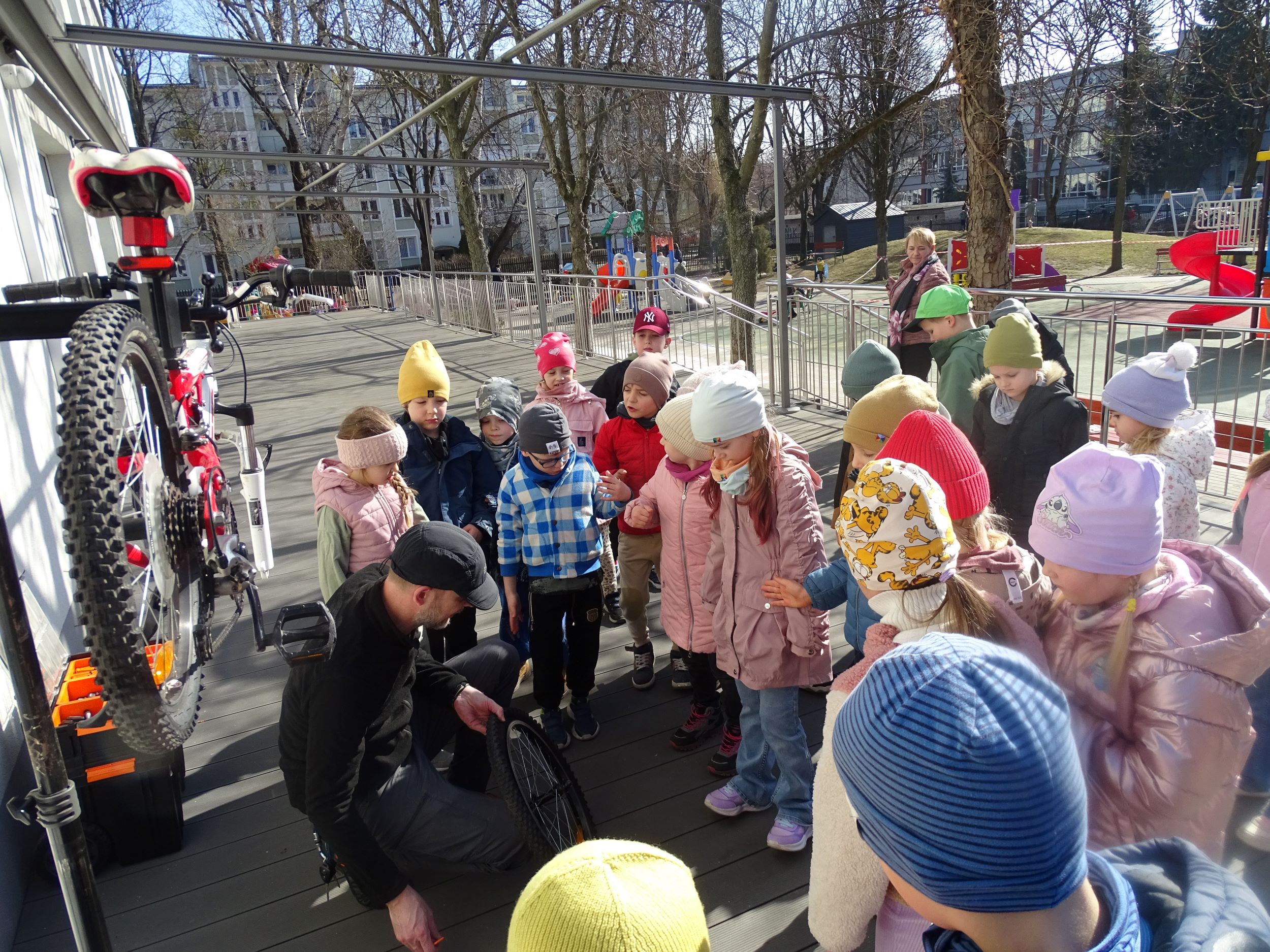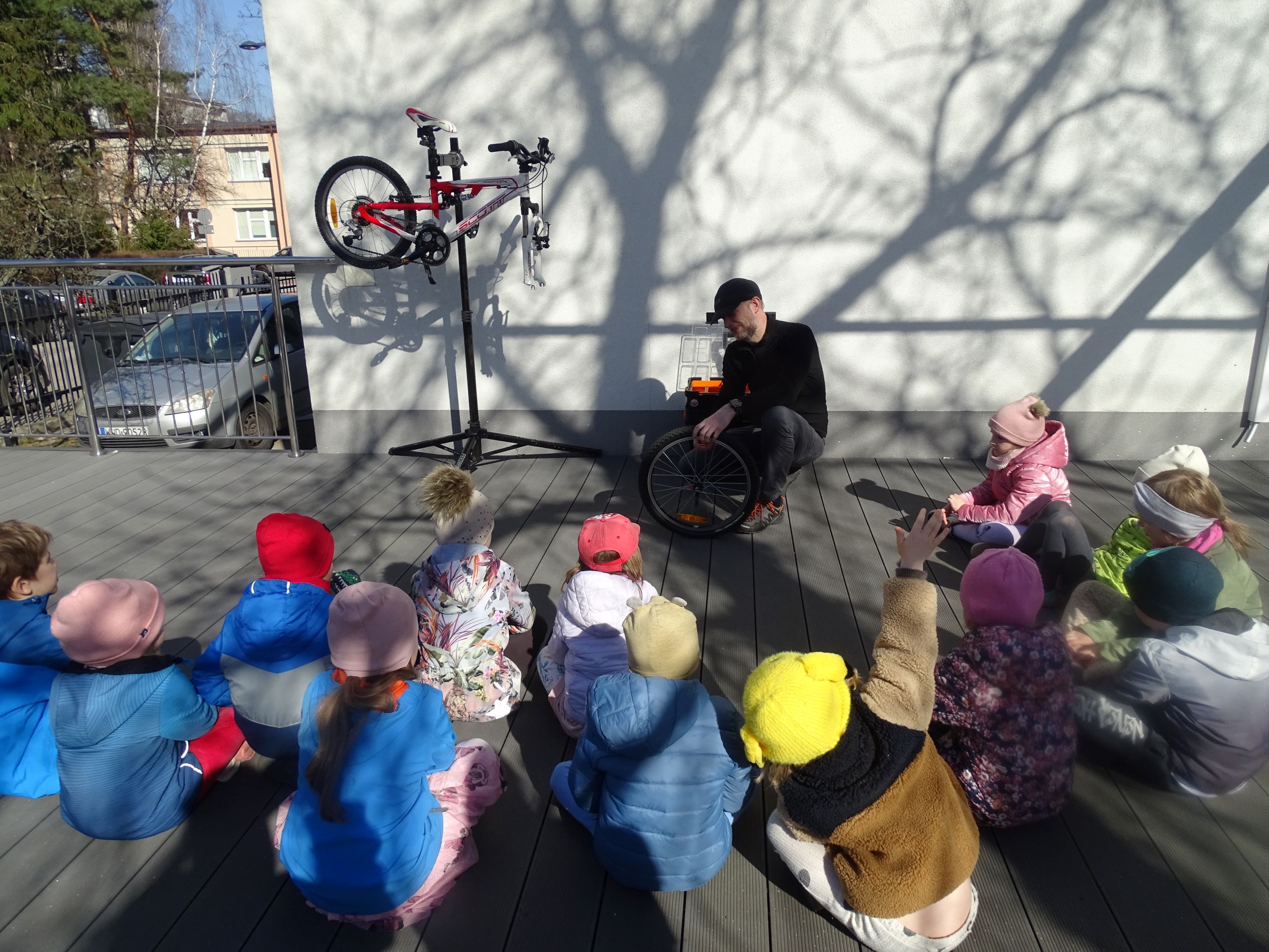 Na początku marca dzieci z grup Maki i Chabry wzięły udział w warsztatach rowerowych, które zostały zorganizowane w ramach projektu "Po Warszawie pieszo i na kółkach". Pan z Mobilnego Serwisu Rowerowego odwiedził nasze przedszkole i opowiedział dzieciom z jakich elementów zbudowany jest rower jak również nauczył je zmieniać przedziurawioną dętkę. Przedszkolaki z ogromnym zaangażowaniem i zainteresowaniem wzięły w nich udział.