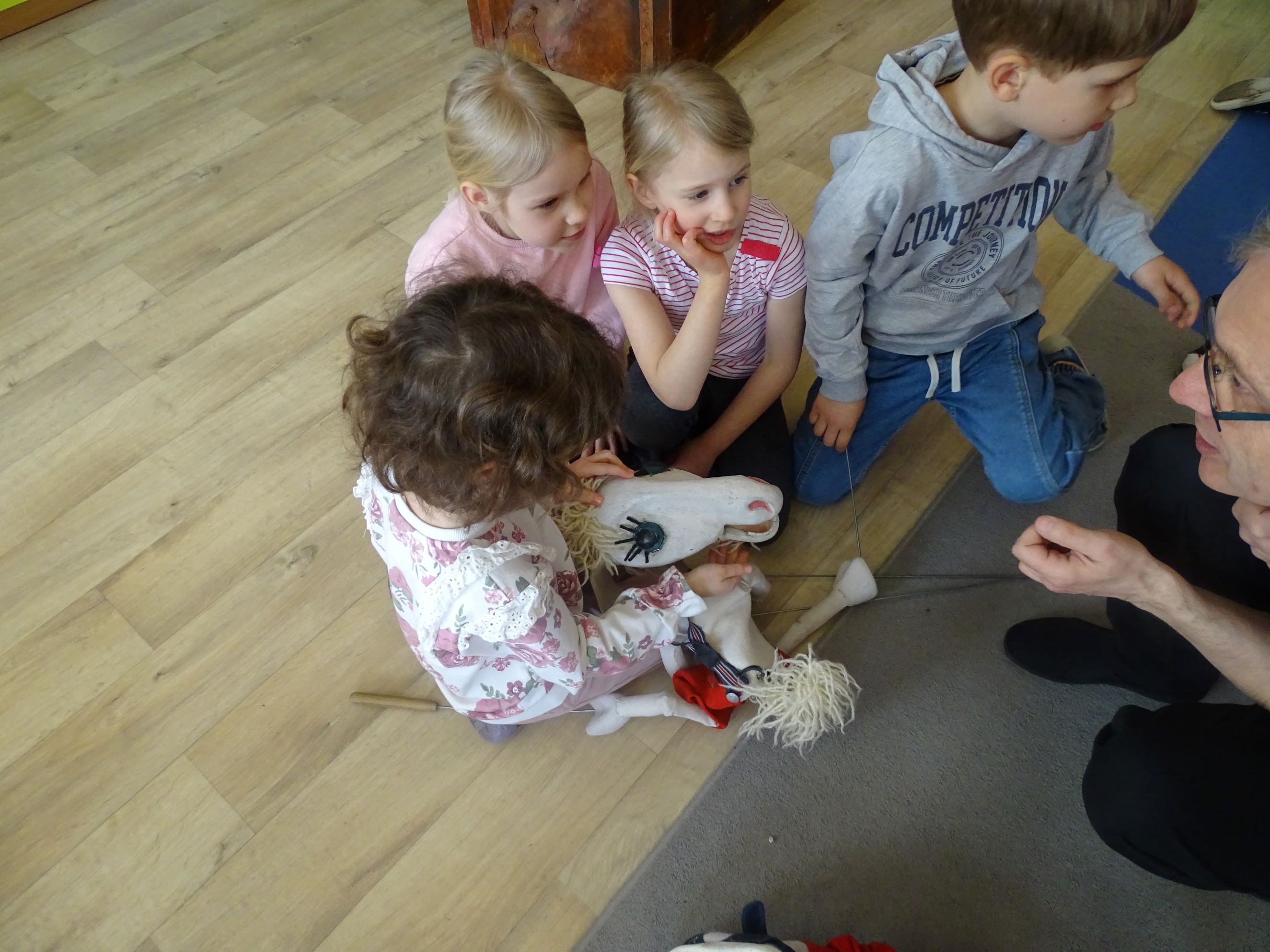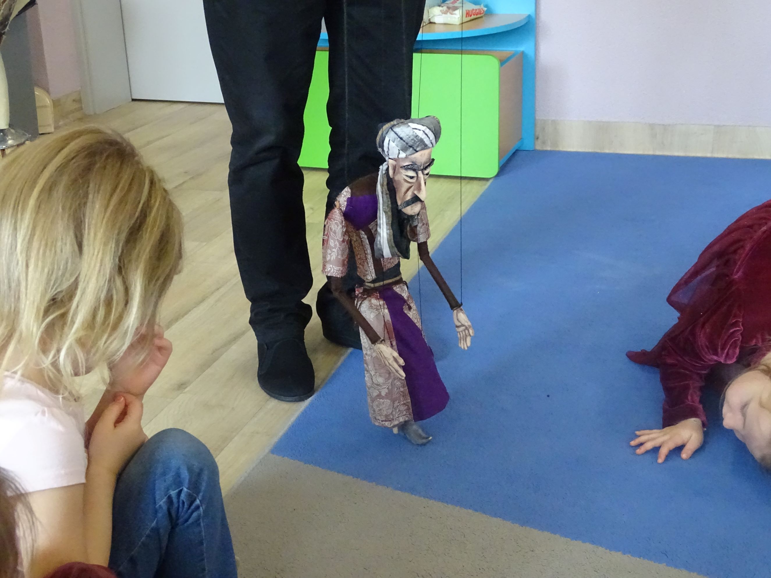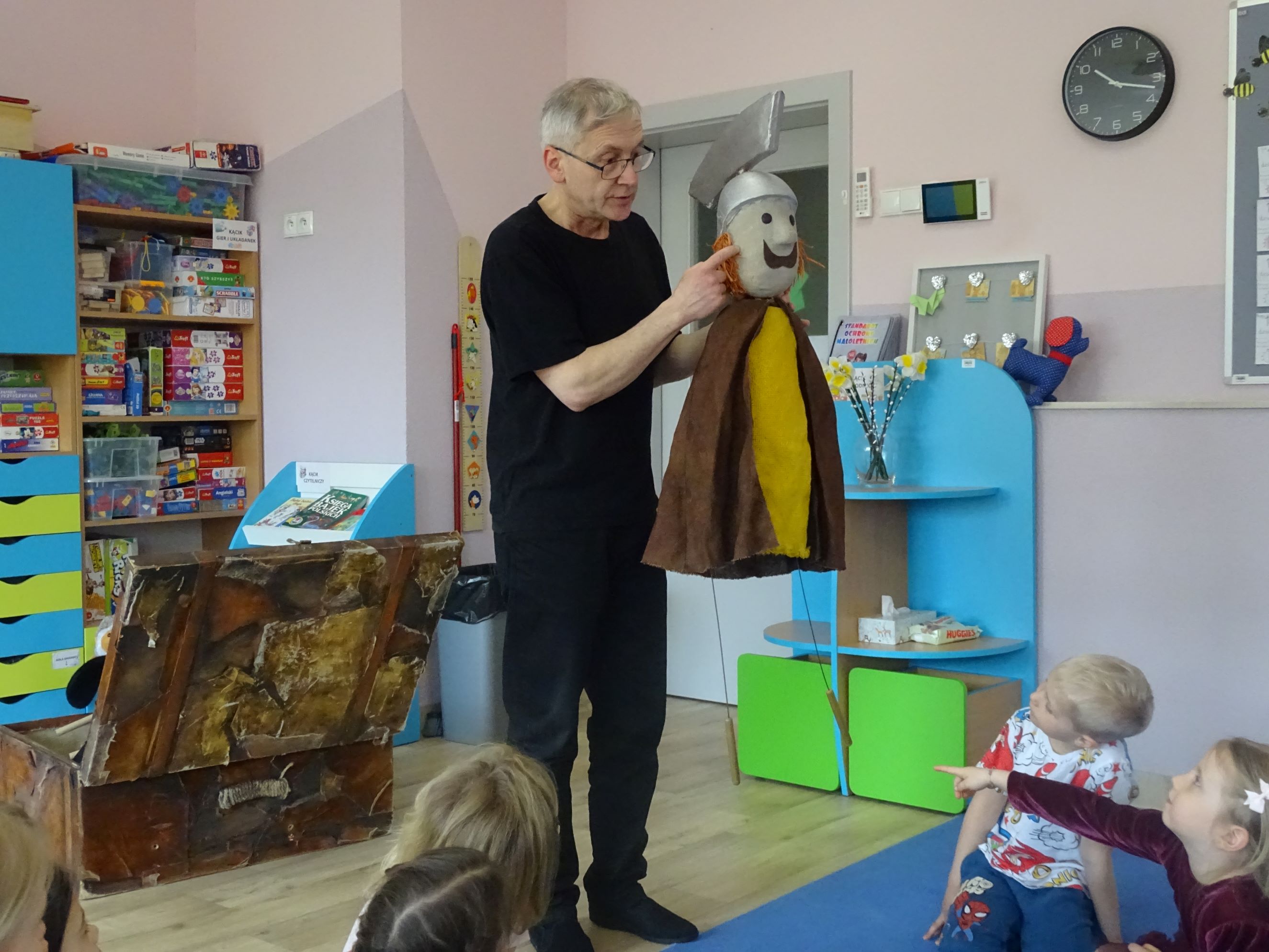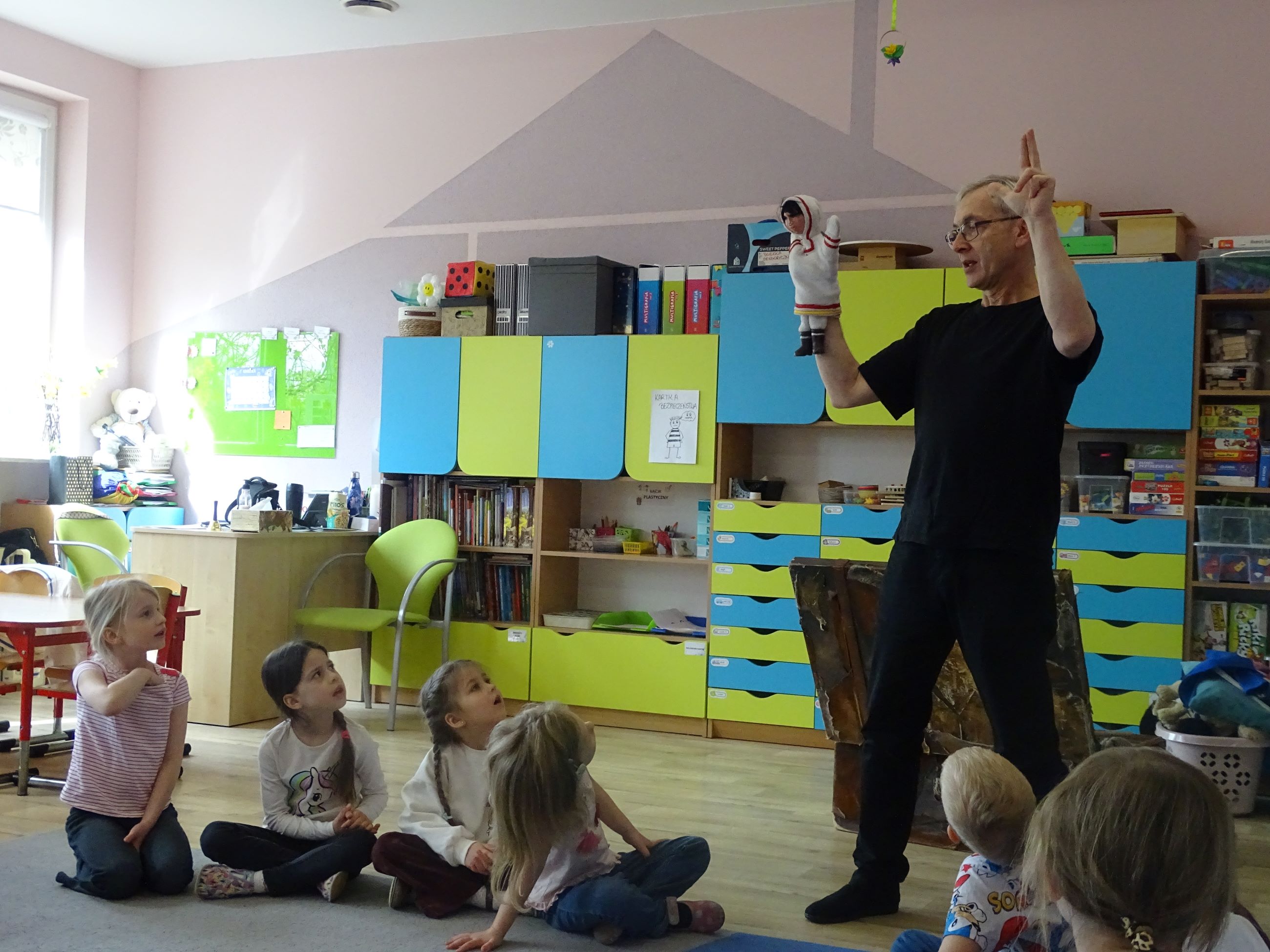W minionym tygodniu przedszkolaki z grupy Maki odwiedził pan Paweł Jaroszewicz, aktor z Teatru Lalek Guliwer, który pokazał oraz opowiedział dzieciom ciekawostki na temat lalek grających w spektaklach. Były to historyczne pacynki, kukły, jawajki, marionetki, które dzieci mogły dokładnie obejrzeć oraz nimi animować. Przedszkolaki z ogromnym zainteresowaniem uczestniczyły w zajęciach i z radością bawiły się lalkami podziwiając ich wygląd oraz mechanizmy dzięki, którym aktor mógł nimi poruszać.
