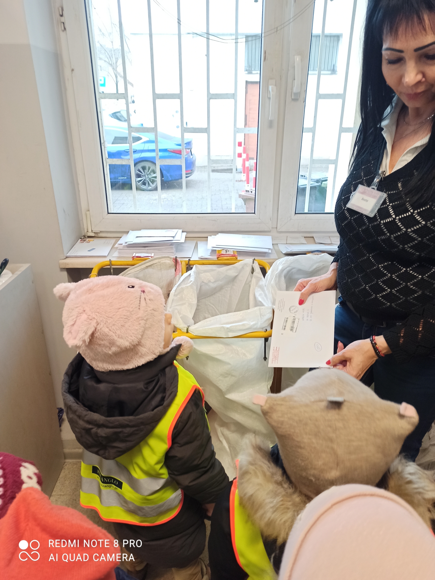 Dzieci z grupy Niezapominajki odwiedziły urząd pocztowy. Podczas wizyty przedszkolaki dowiedziały się, na czym polega praca na poczcie oraz jak wygląda droga listów i paczek do adresatów. Z dużym zainteresowaniem słuchały opowieści o codziennej pracy pracowników poczty. Na zakończenie dzieci zobaczyły także, jak wygląda skrzynka na listy.Była to bardzo ciekawa wycieczka, która sprawiła dzieciom wiele radości.
