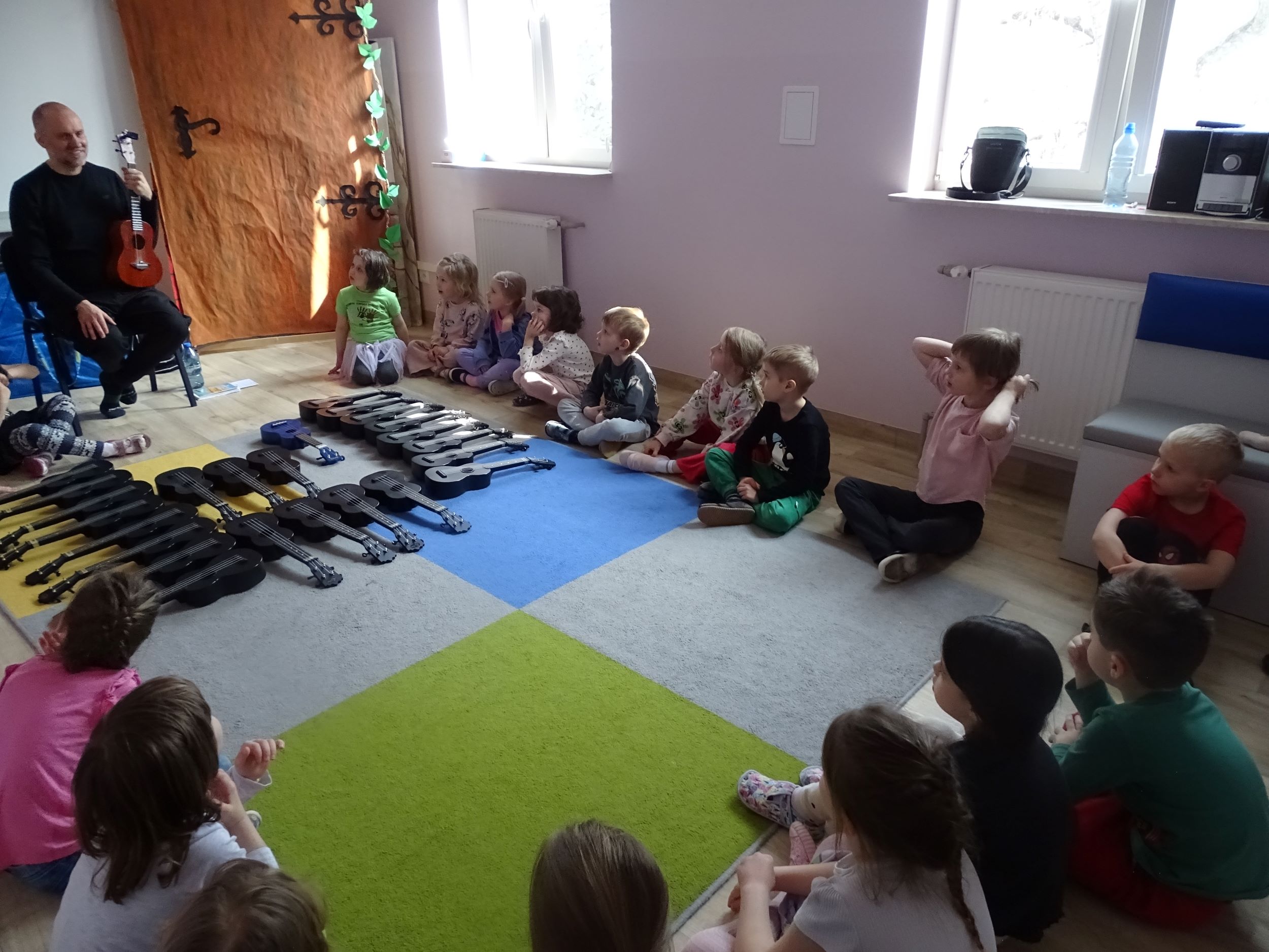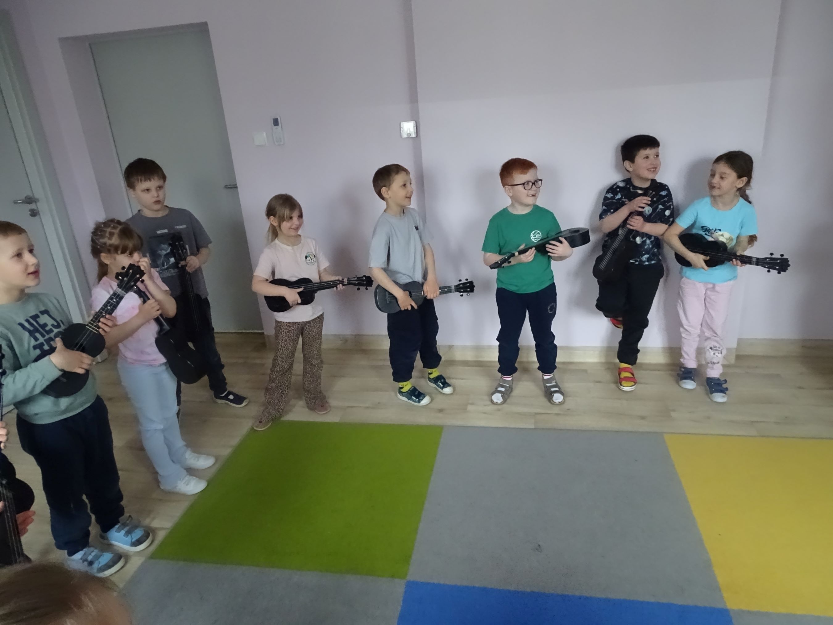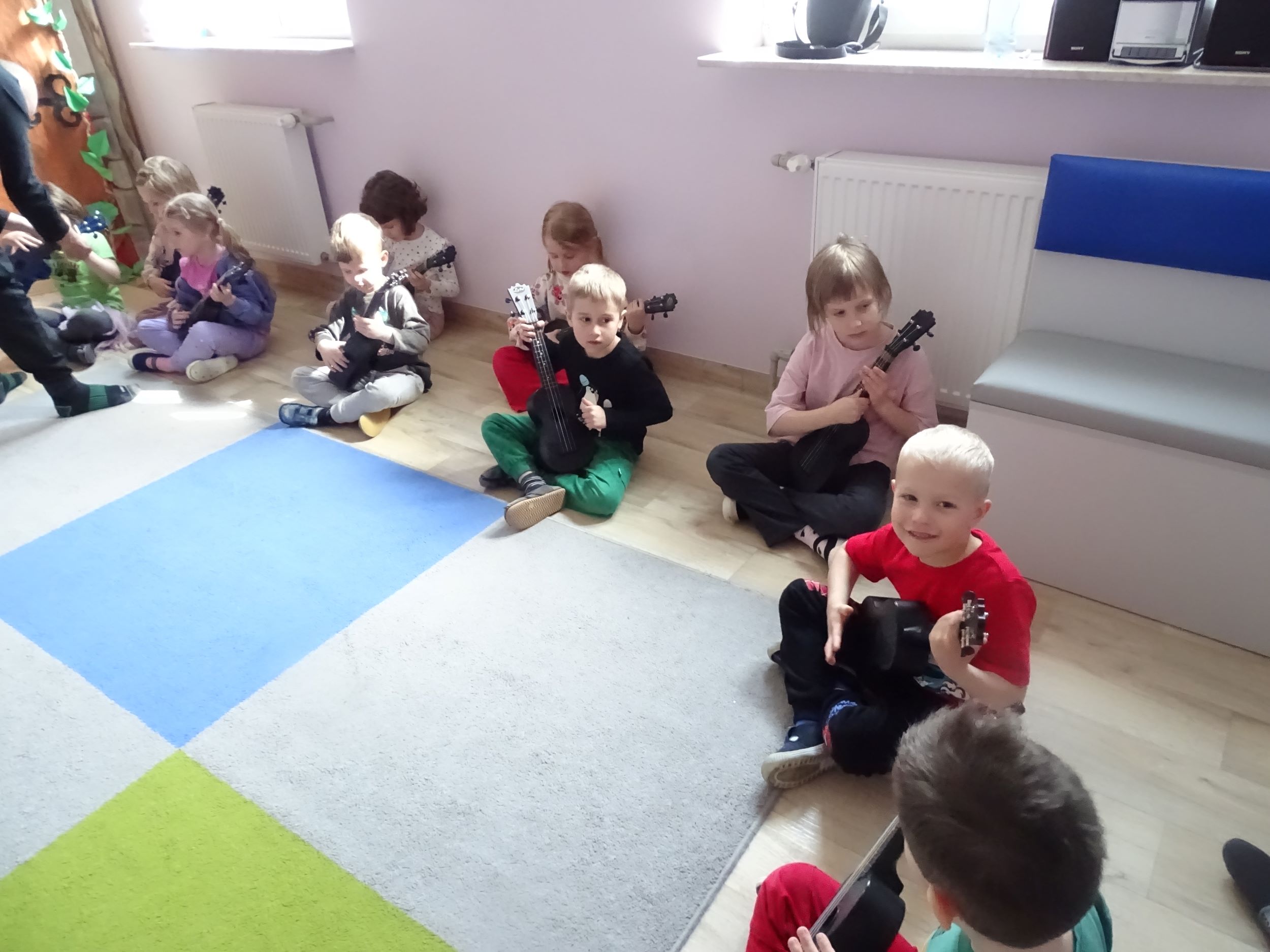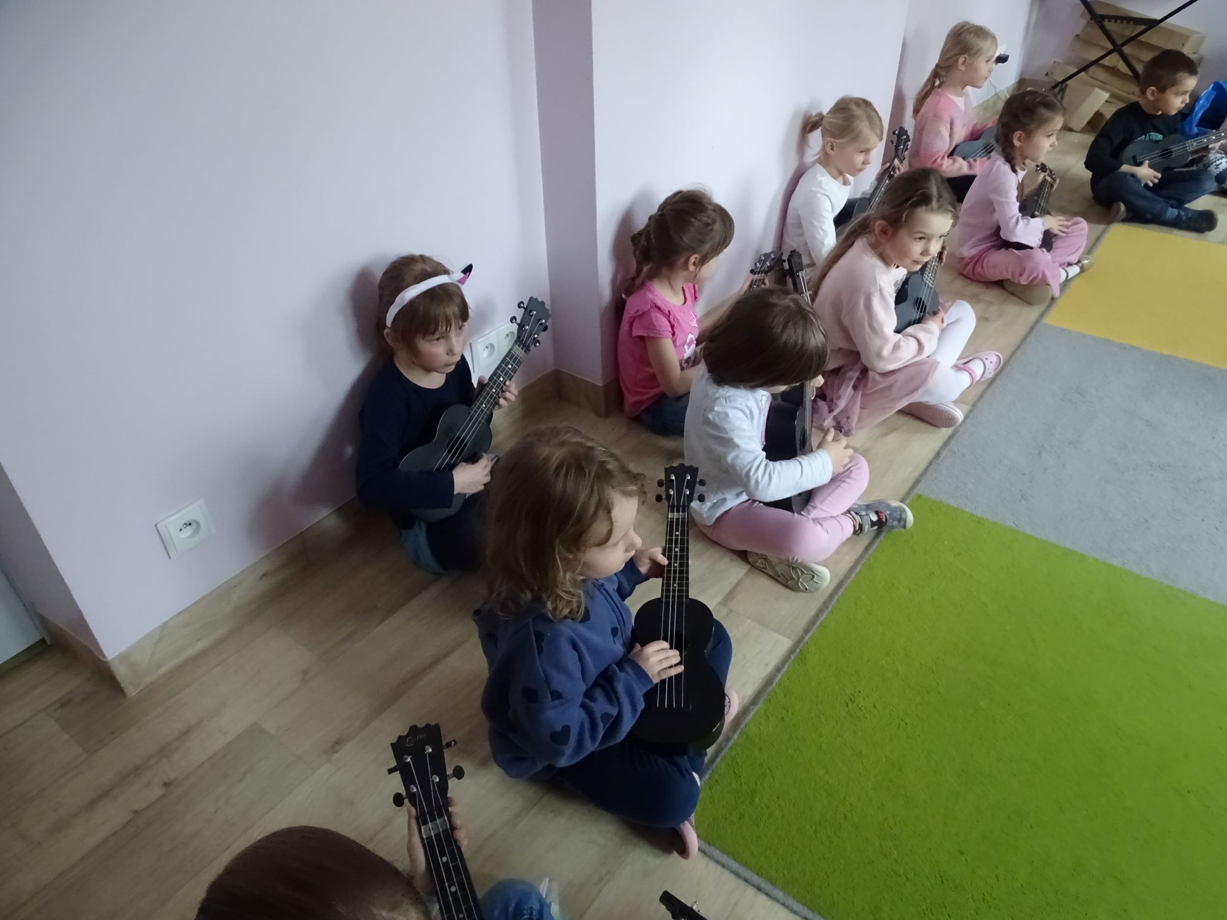 Cyklicznie w naszym przedszkolu odbywają się zajęcia ukulele lub bębniarskie, podczas których dzieci rozwijają umiejętności muzyczne. Uczą się prawidłowo trzymać instrument, ćwiczą umiejętności manualne. Dzieci uczestniczą w nich z ogromnym zaangażowaniem.