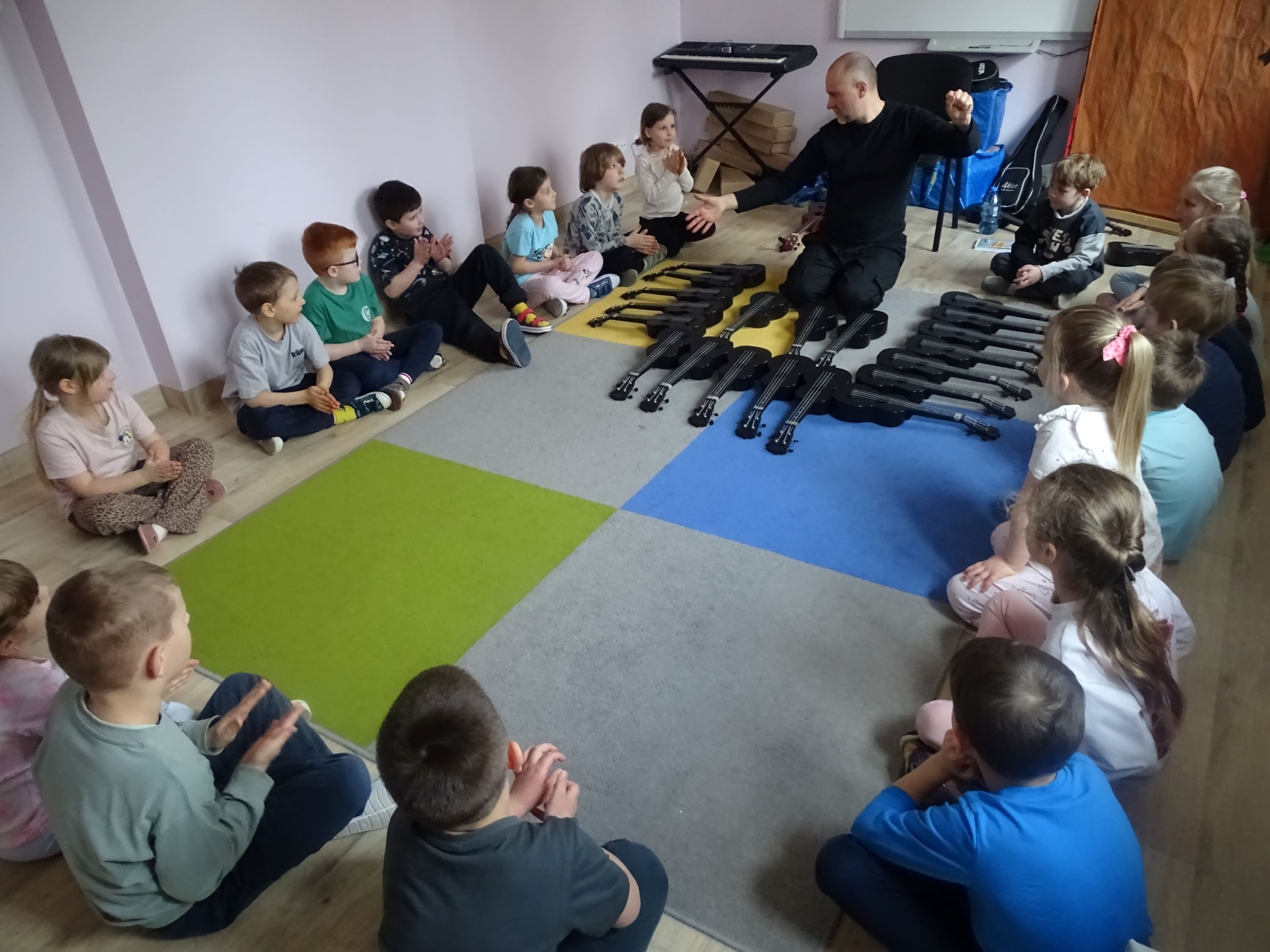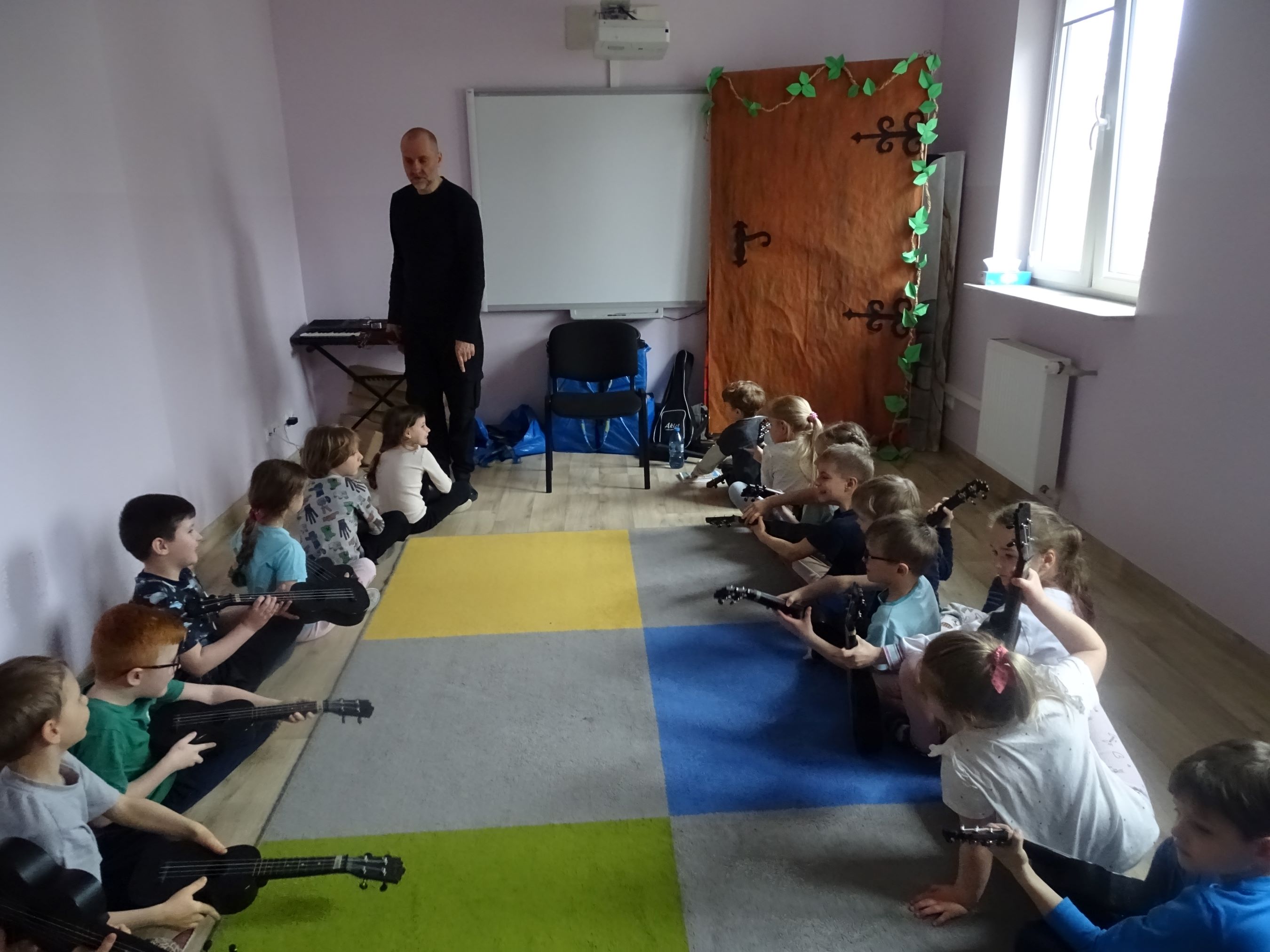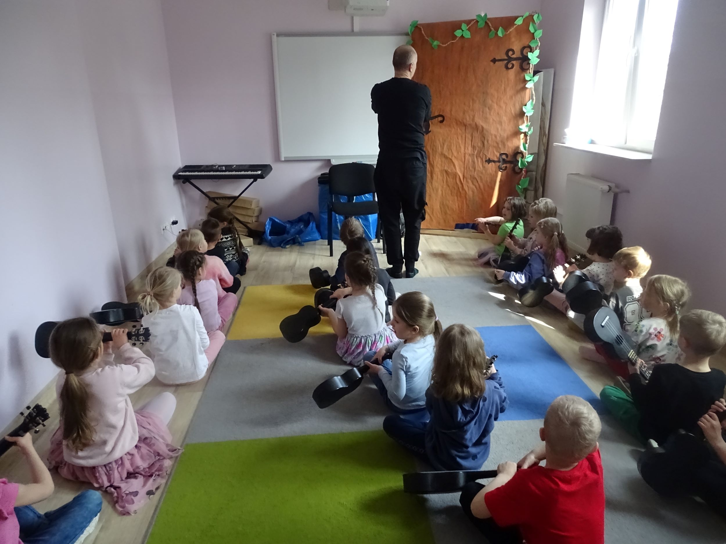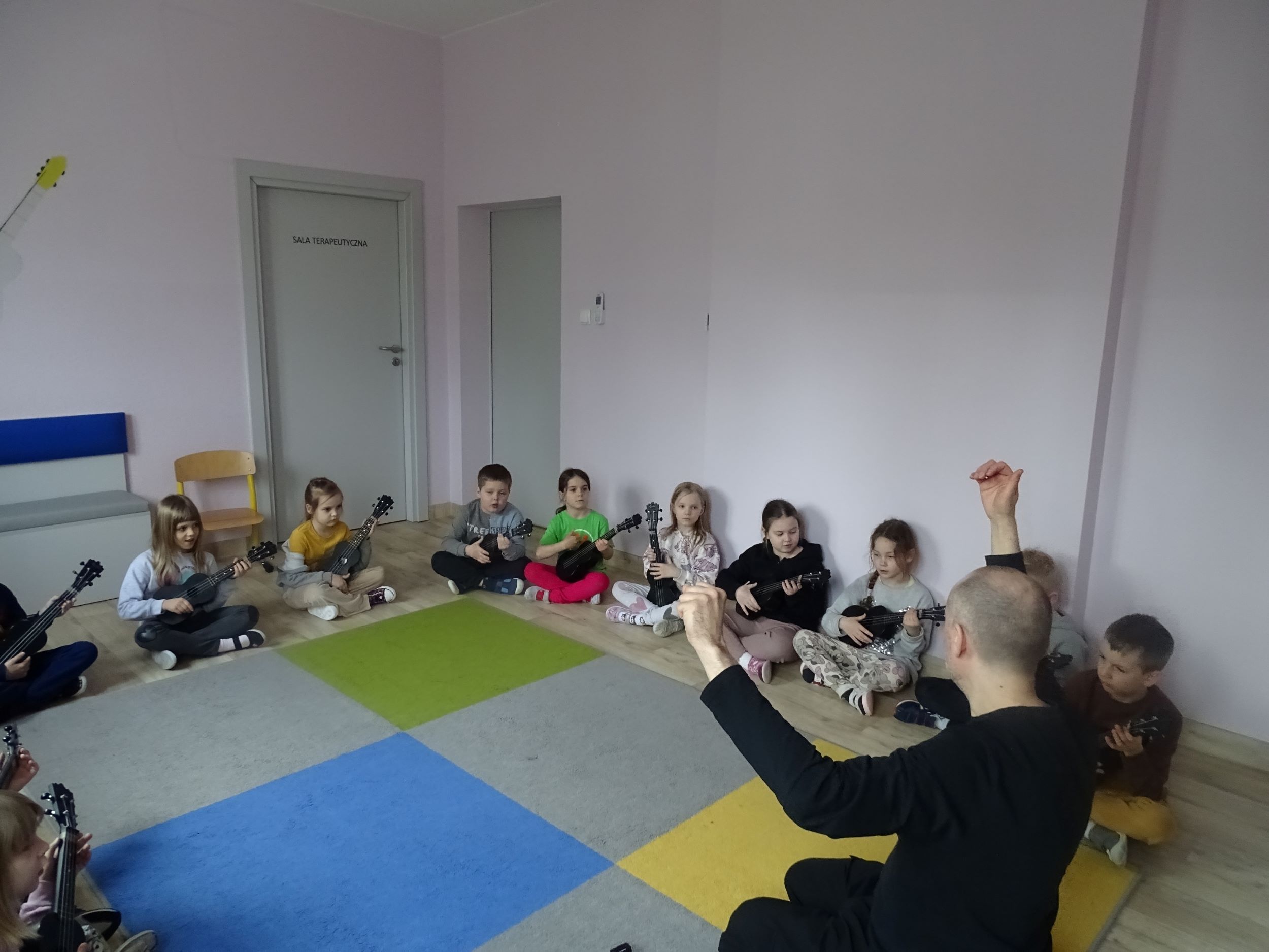 Cyklicznie w naszym przedszkolu odbywają się zajęcia ukulele lub bębniarskie, podczas których dzieci rozwijają umiejętności muzyczne. Uczą się prawidłowo trzymać instrument, ćwiczą umiejętności manualne. Dzieci uczestniczą w nich z ogromnym zaangażowaniem.
